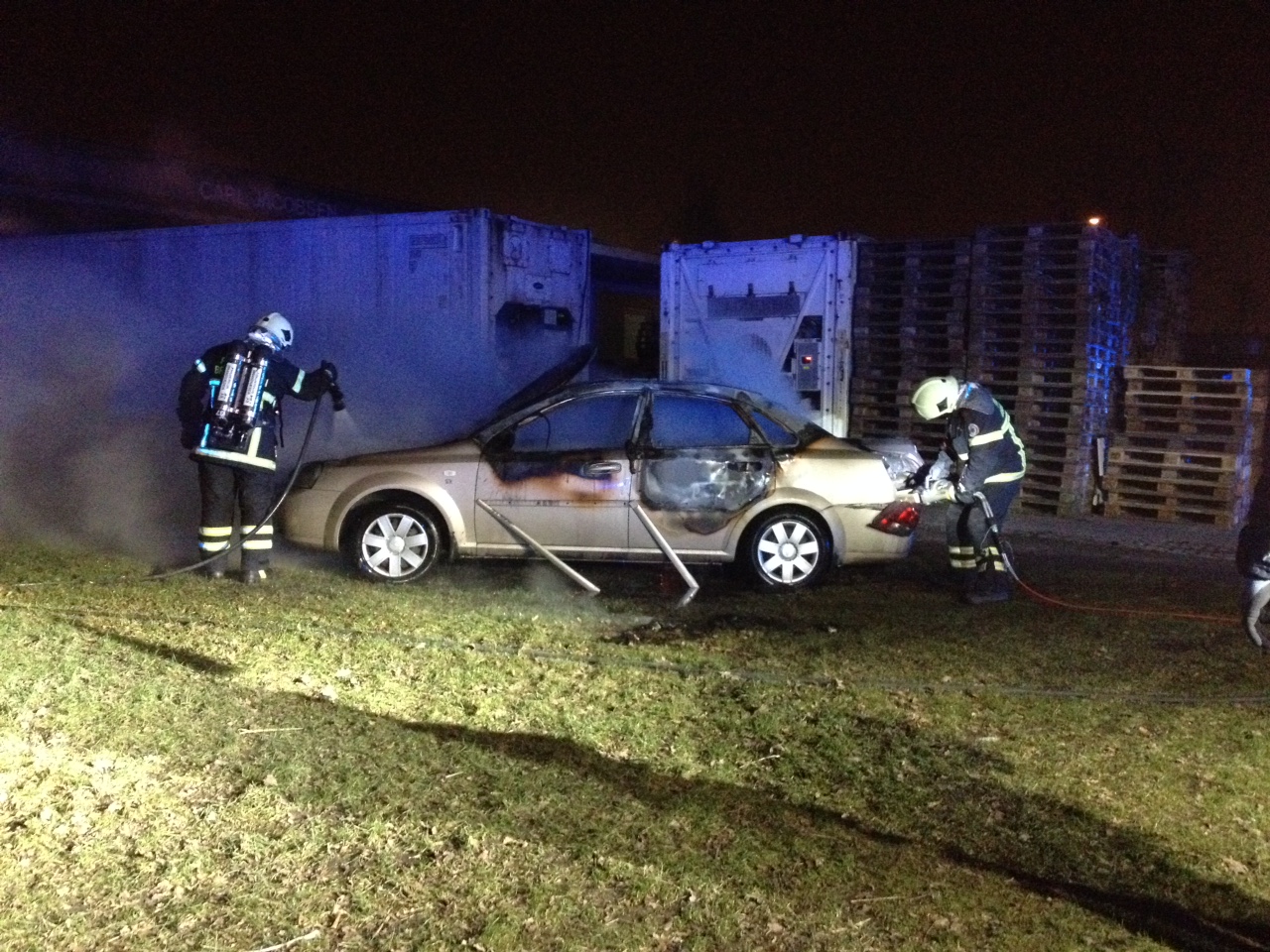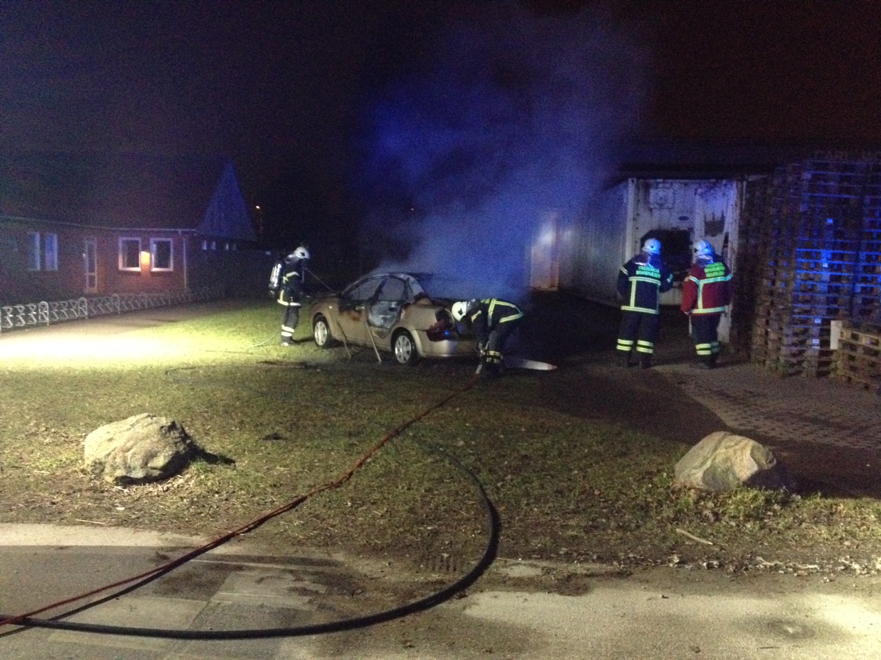 Bilbranden havde godt fat da Brandvæsnet nåede frem, med til trods for et effektivt slukningsarbejde, var branden i bilen så voldsom, at den udbrændte totalt