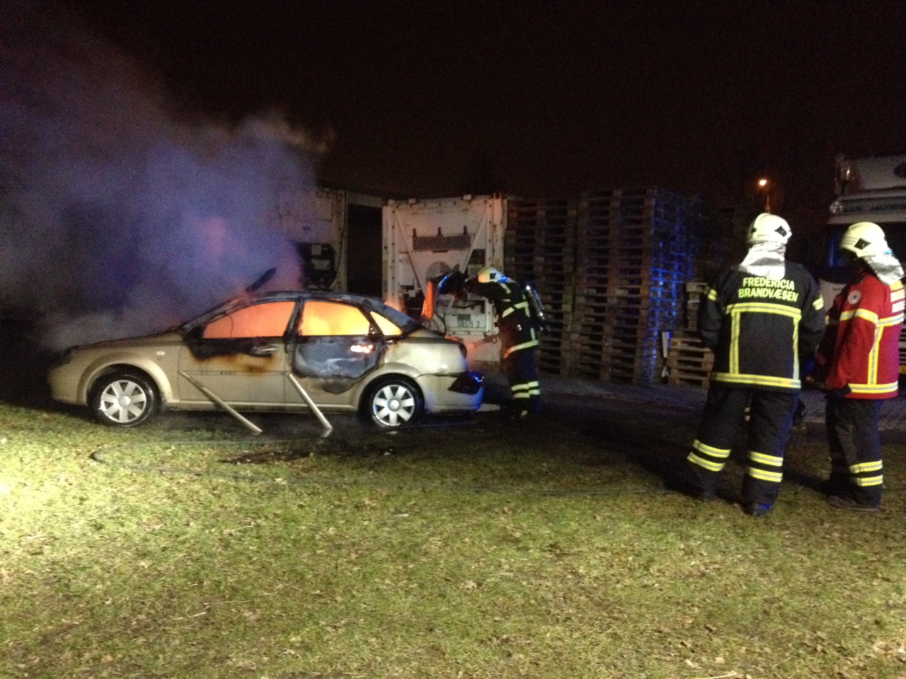 Fredag aften kort efter kl 23.30, blev Fredericia Brandvæsen sendt ud til bilbrand ved Prangervej, tæt på Fredericia Fritidscenter.
