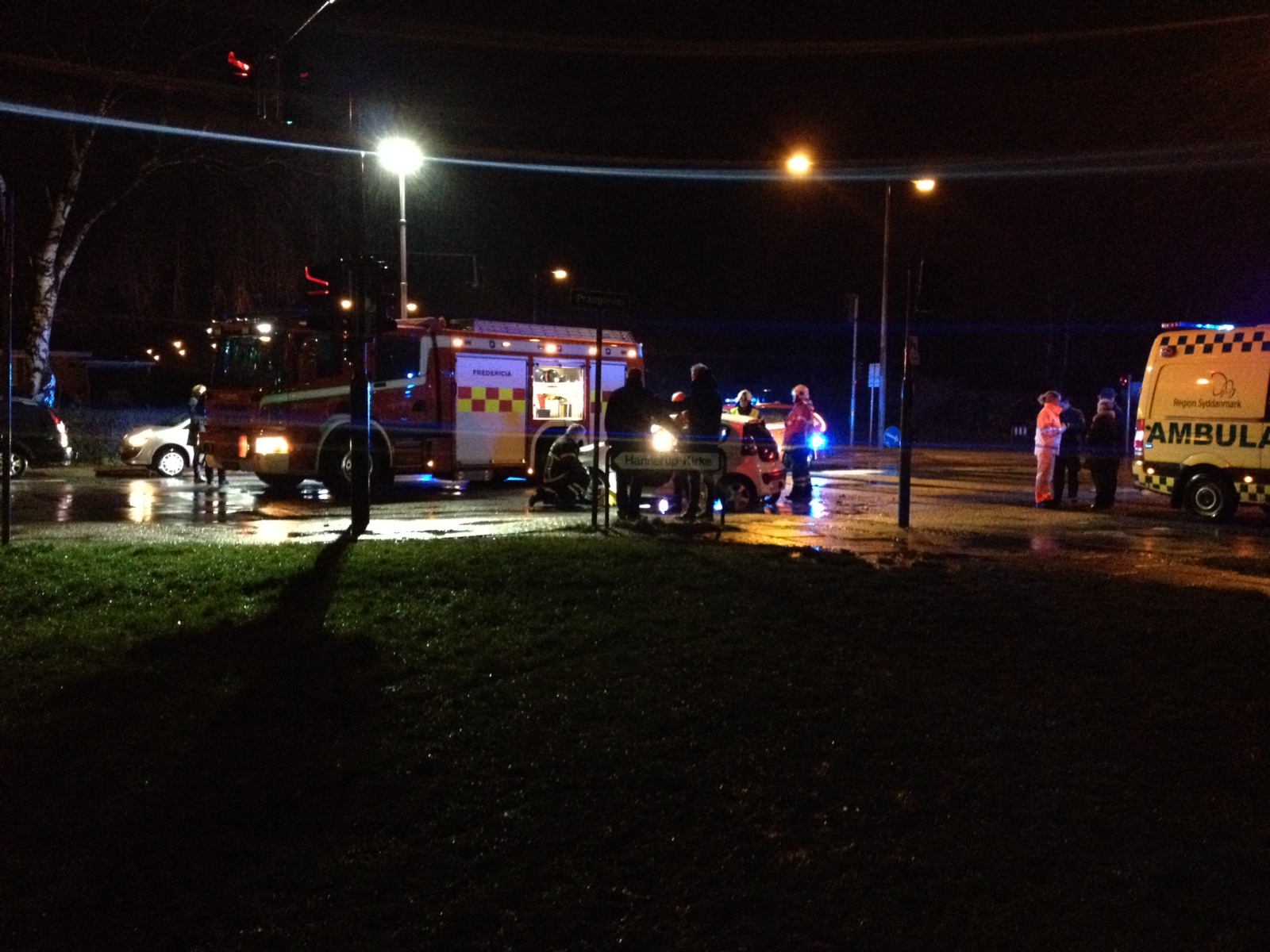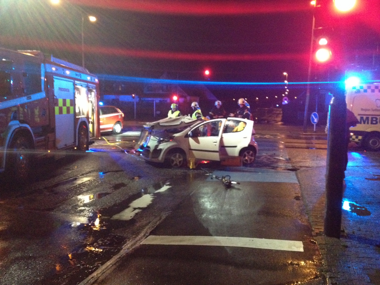Brandvæsenet var fremme inden for få minutter efter ulykken, og mandskabet gik straks igang med klargøringen til at frigørelse den fastklemte person, alt imens at der blev taget hånd om de øvrige parter i trafikuheldet.