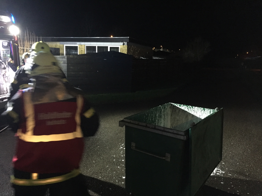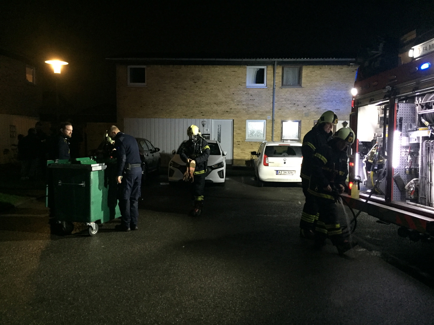 Trekant Brand fik hurtigt slukket en rygende container, og vende retur til stationen på Prangervej.