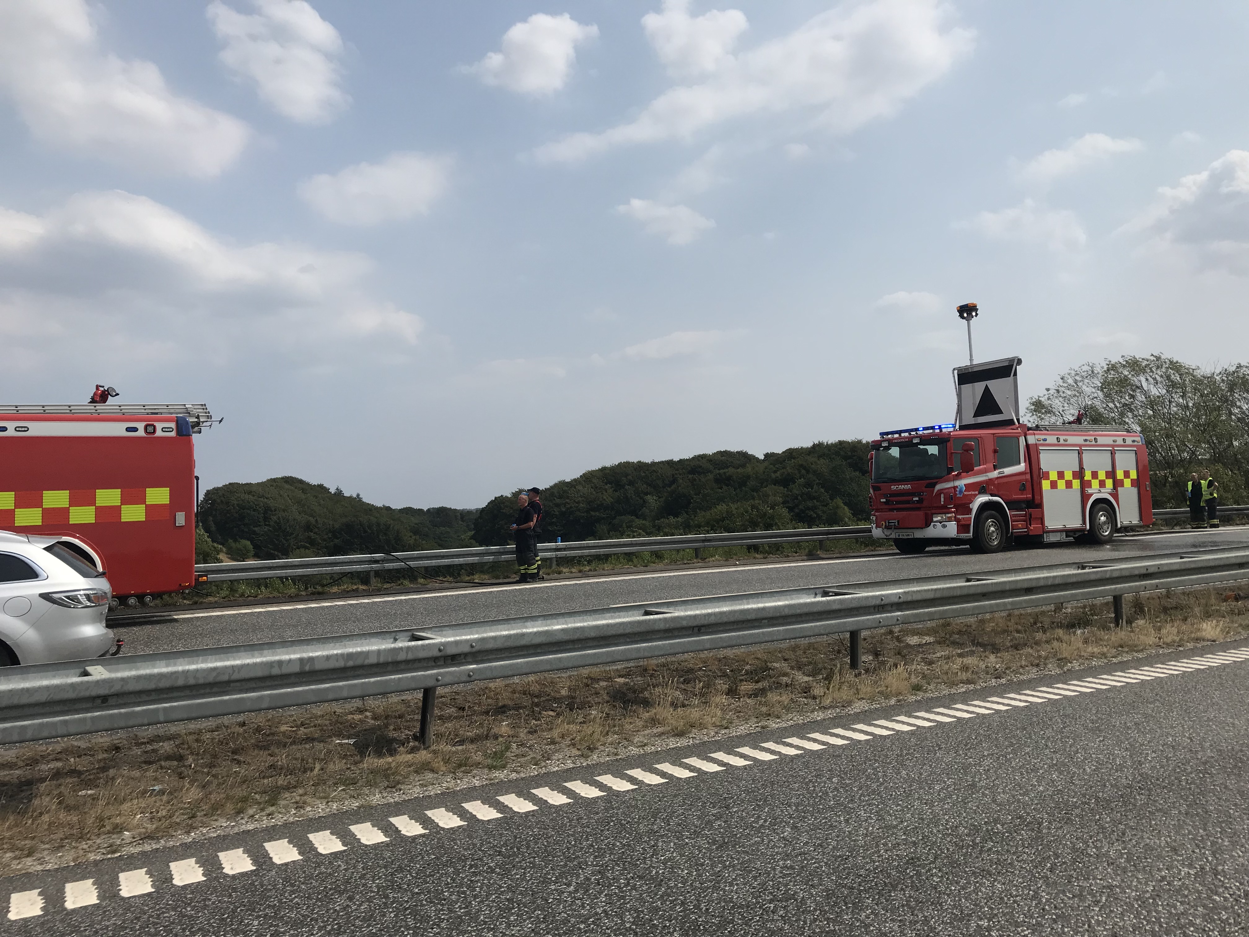 Onsdag eftermiddag observerede flere bilister brand på en skråning, ved motorvejen mellem Taulov og Skærup.