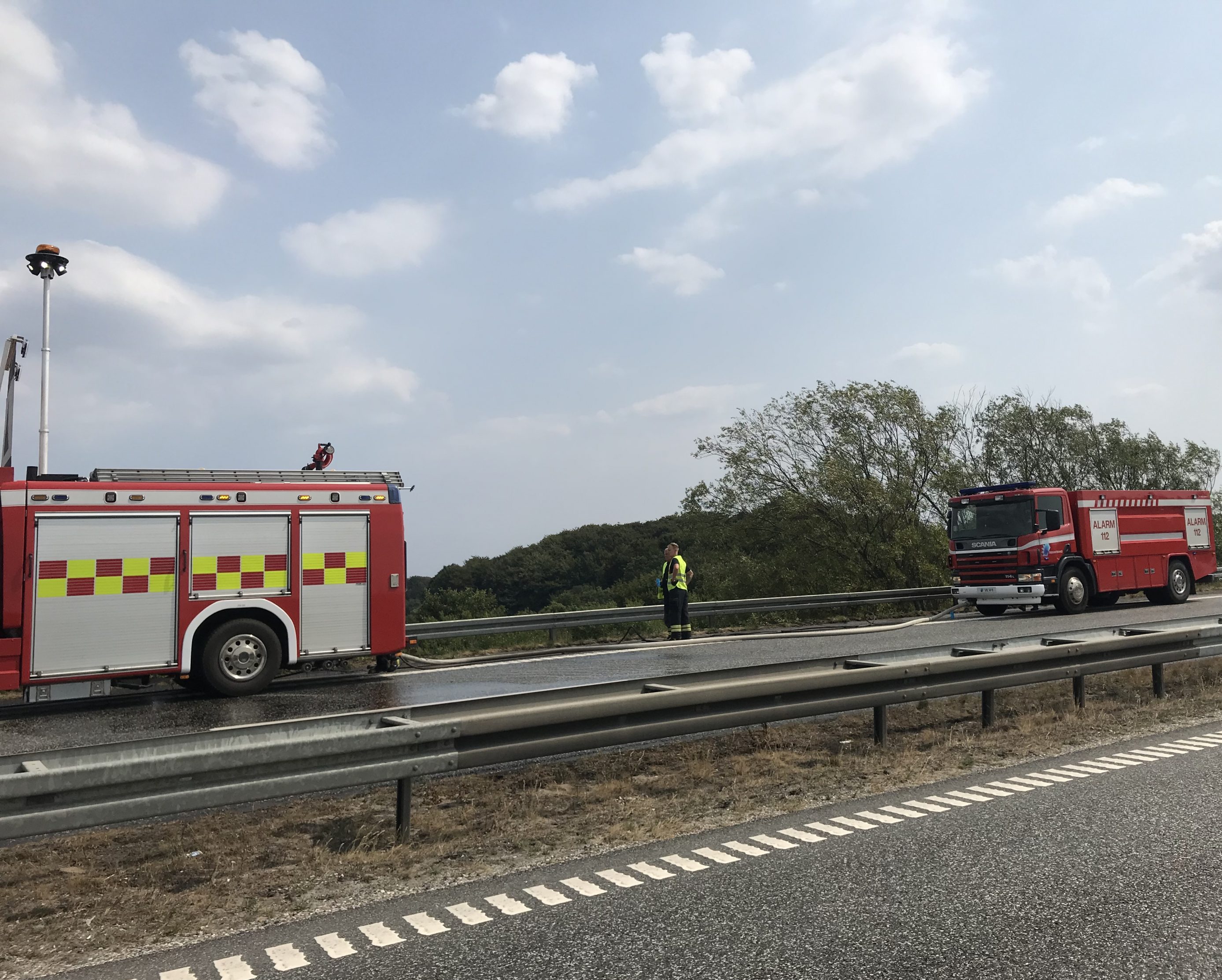 Onsdag eftermiddag udbrød der brand på en skråning, ved motorvejen mellem Taulov og Skærup