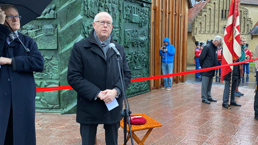 Der var taler ved primusmotor Torben Vendt og formand for menighedsrådet Per Møller, inden snoren blev klippet og porten gik op til det istandsatte og udvidede våbenhus.