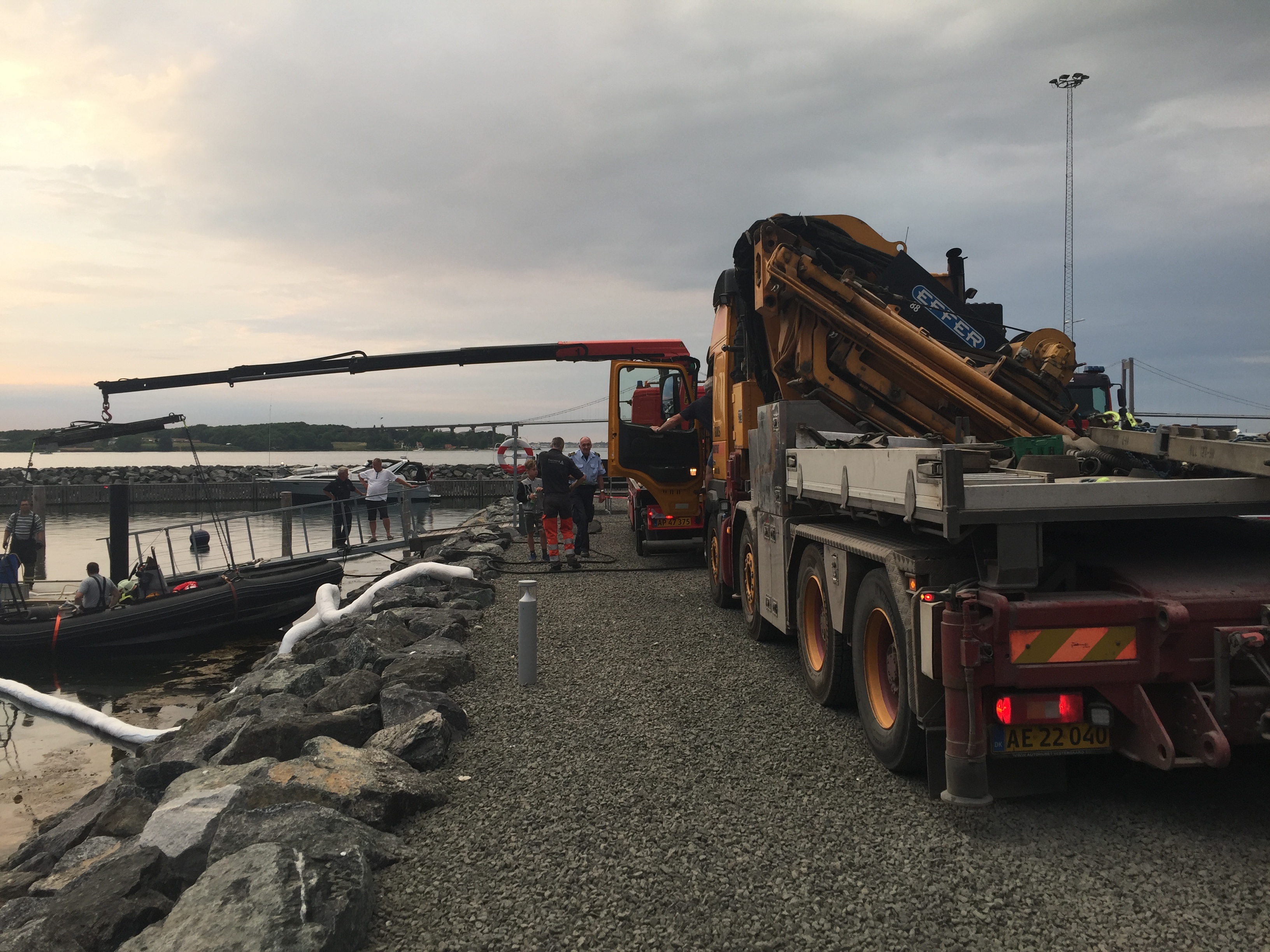 Kl. 17.35 meddelte alarmcentralen, at 2 mænd var røget overbord fra en båd i Lillebælt mellem Den Nye og Den Gamle Lillebæltsbro. Begge var under bjærgning. Begge bjærgede blev bragt i land i Middelfart.