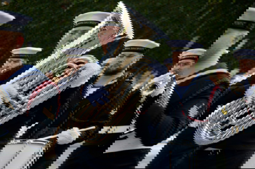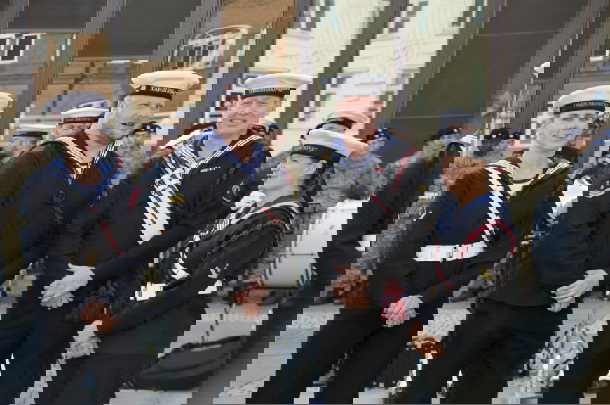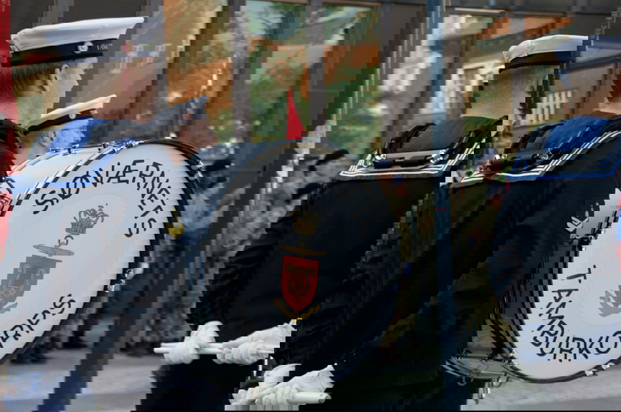 Søværnets Tamburkorps leverede en forrygende koncert med alt fra fædrelandets vemodige melodier til sømandssange. Det er et meget alsidigt tamburkorps, der forstår at spille både til den særlige Flagdag, som til de følelser sådan en dag har.