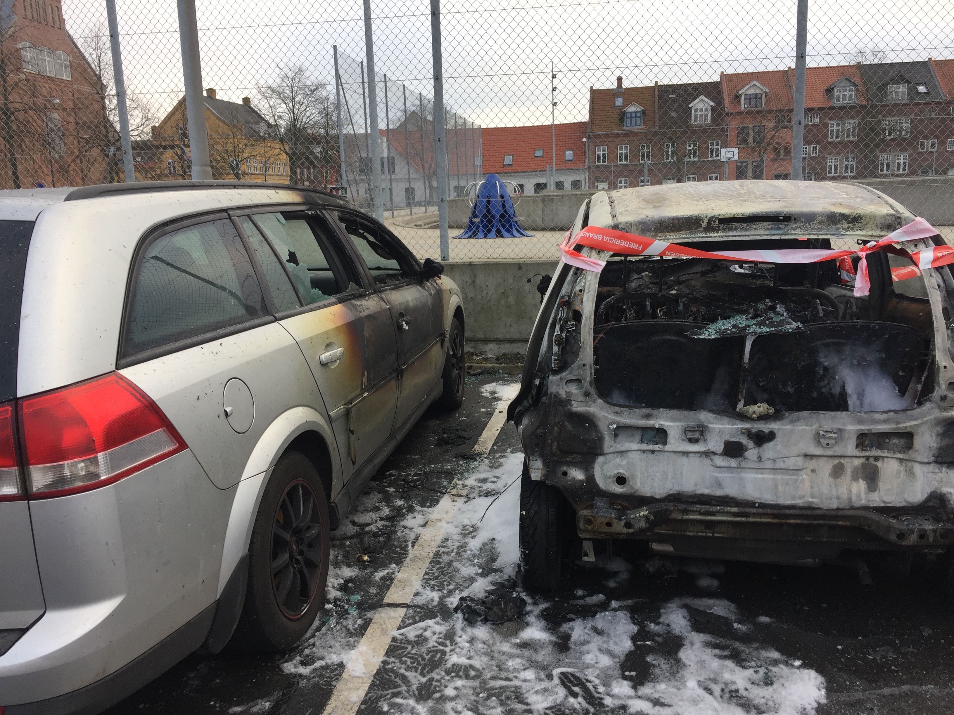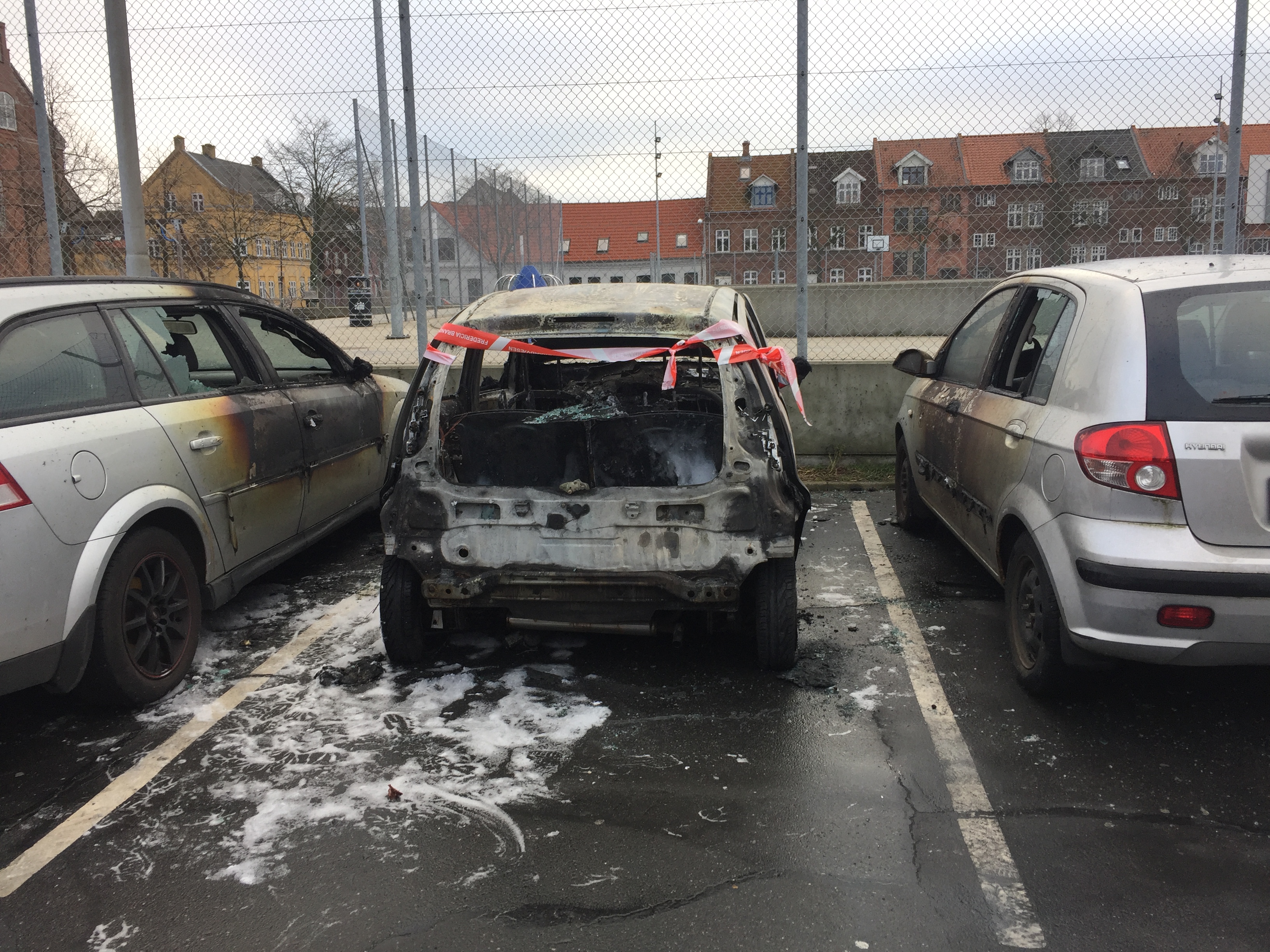 En bil udbrændte natten til torsdag og to andre biler blev brandskadet