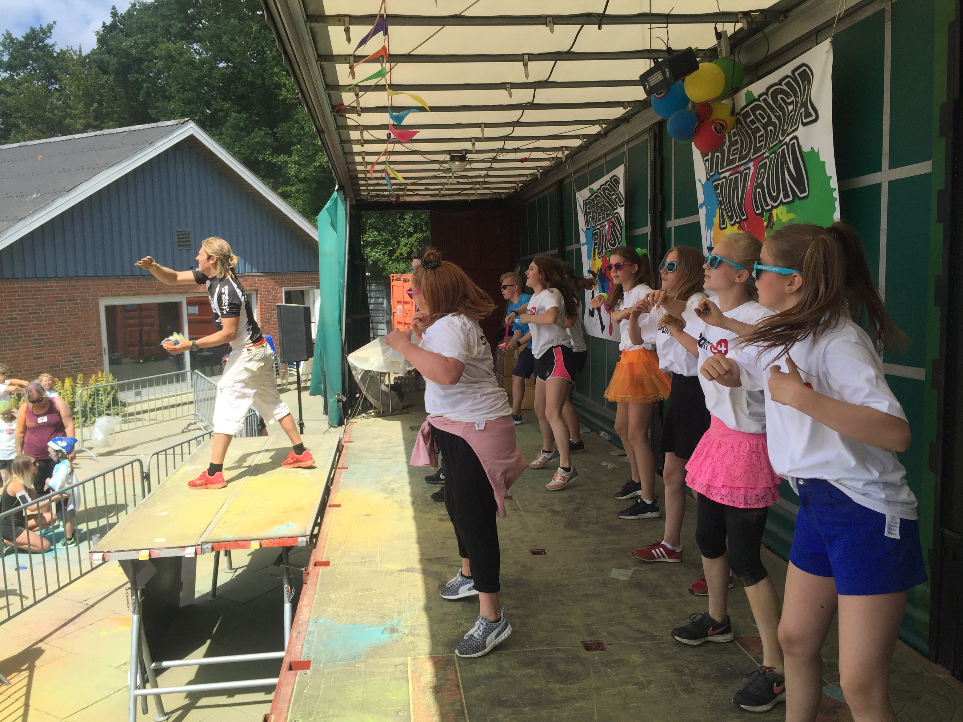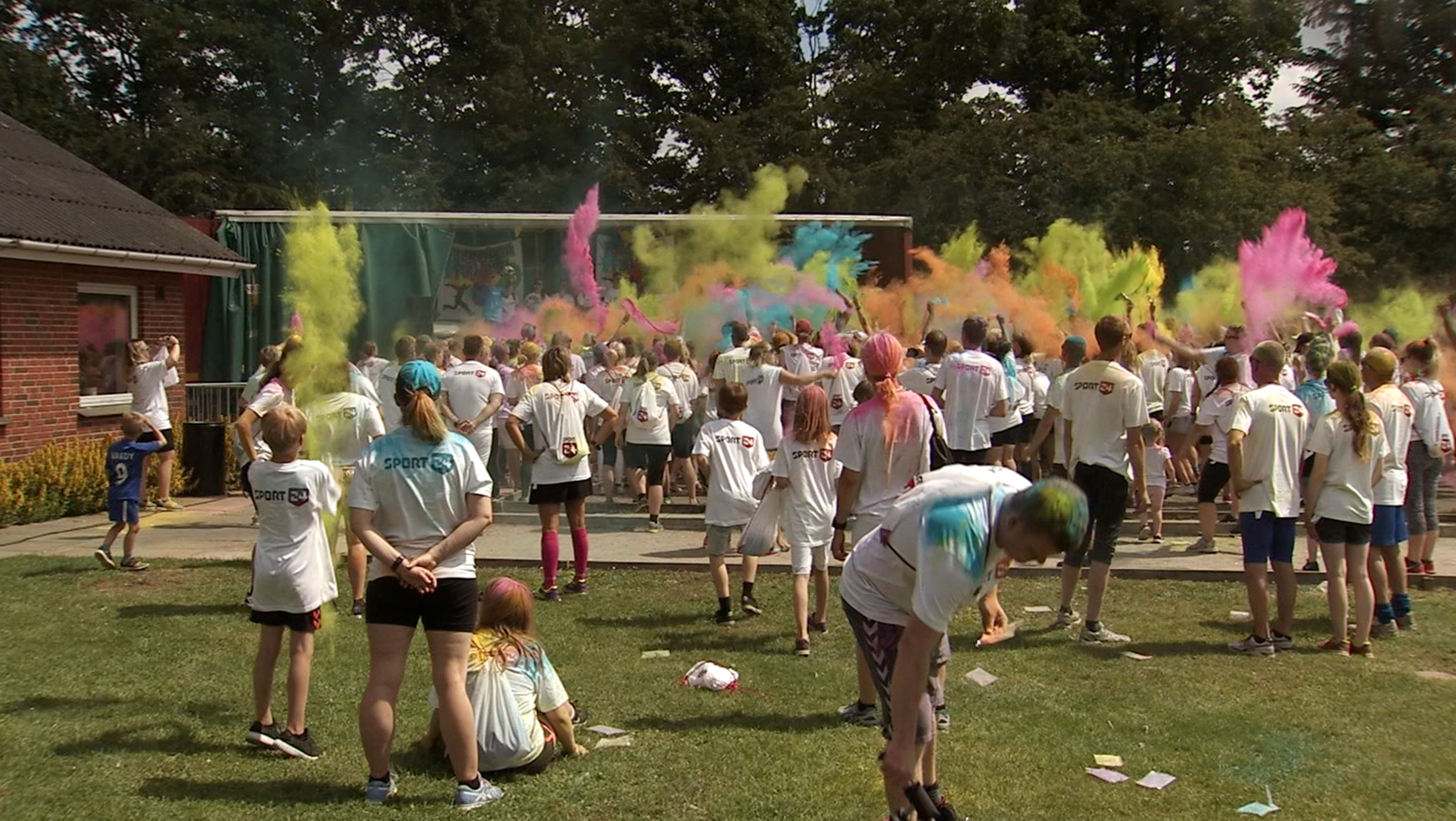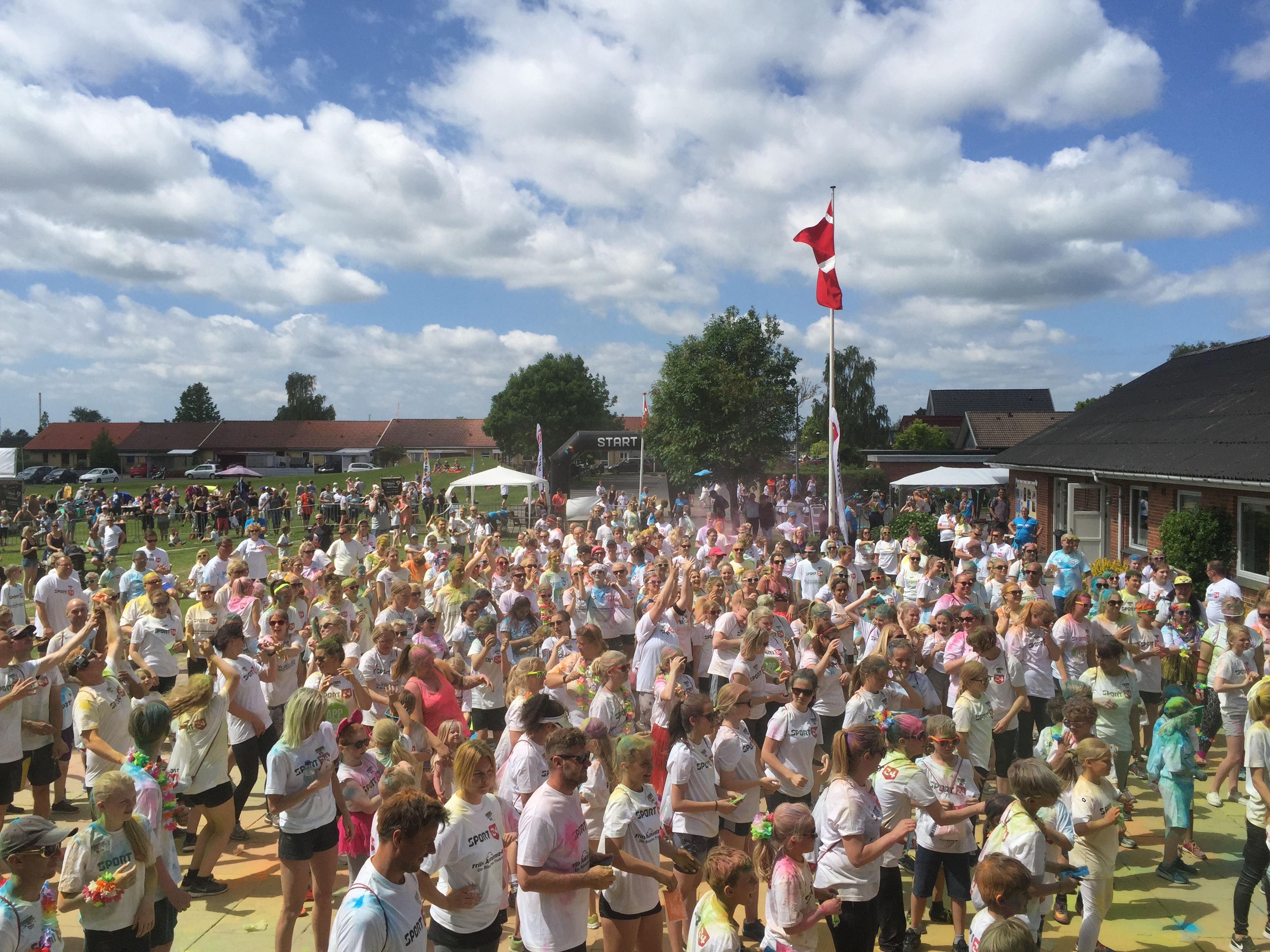 Søndag summede marken der omkredser Nordbohuset på Sonnesvej i Fredericia af liv. Fra en stor scenevogn, underholdte konferencieren og hans hjælpere, og med ganske få mellemrum, blev publikumsskaren overrislet med pulver – i alle regnbuens farver – til tonerne fra det musik DJén lod vælte ud af højtalerne.