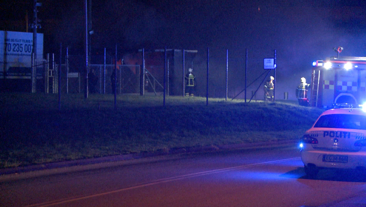 Da brandvæsnet ankom var containeren overtændt og brandvæsnet måtte benytte vandkanonen på mobilsprøjten for at slå de værste flammer ned.
