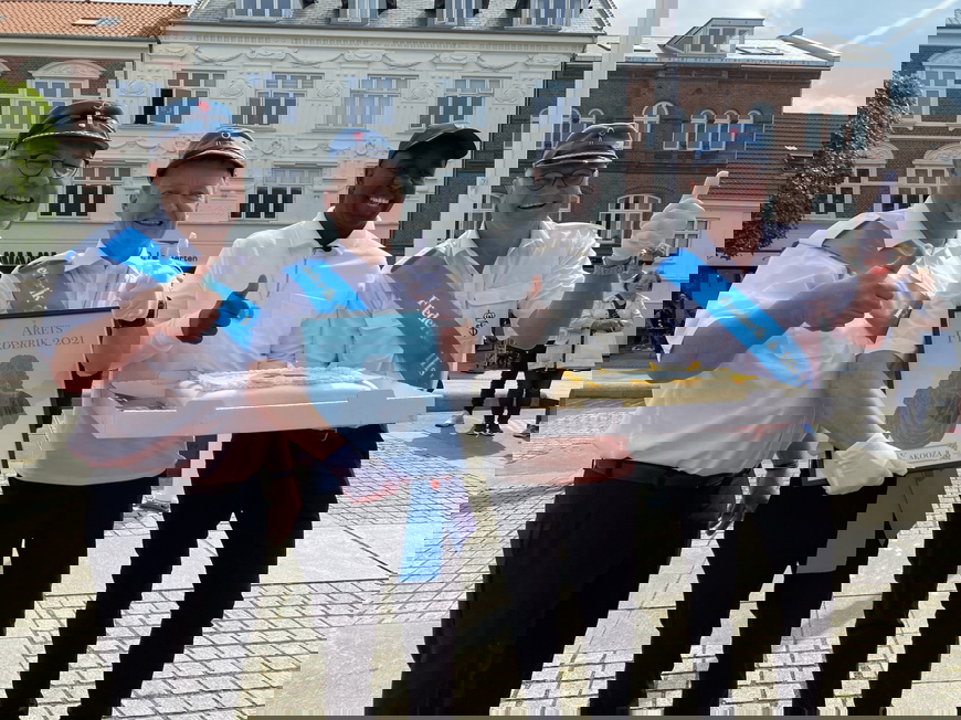 På Rådhuspladsen blev Melvin Kakooza hædret og fik overrakt Frederik d. III Laug medalje, diplom og en lækker kage, med modtageres eget billede på.