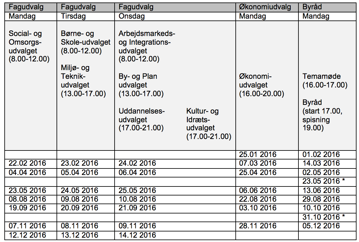 Den nye mødekalender for udvalg og byråd kan du se her.: