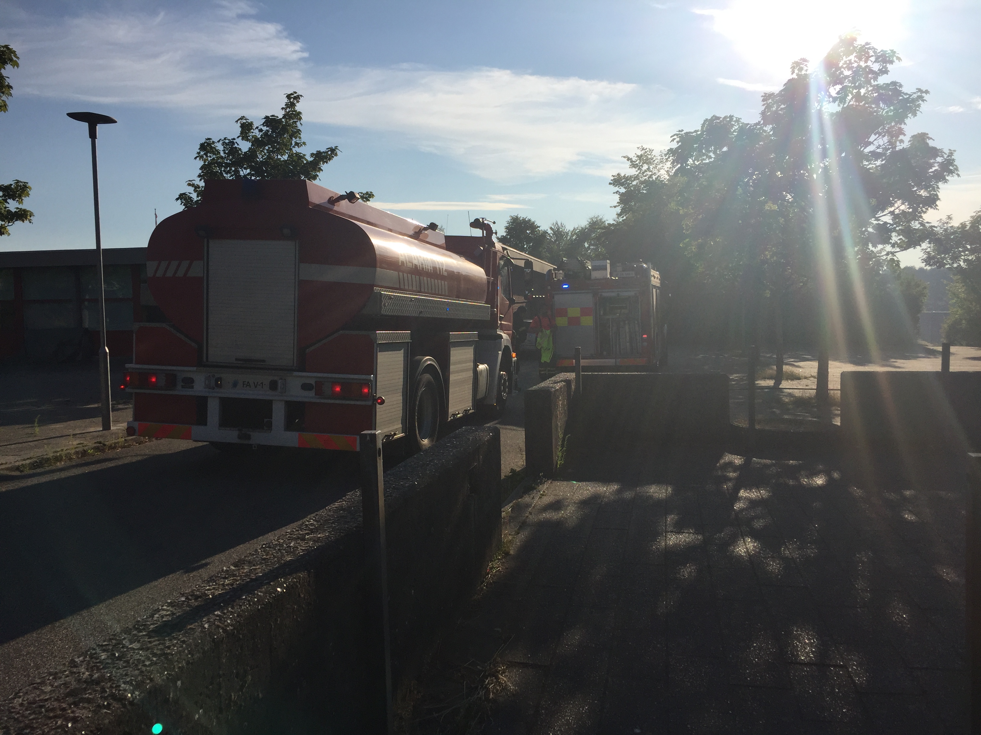 Her var der gået ild i en skråning, og den knastørre beplantning røg kraftigt, da brandvæsnet nåede frem til adressen.