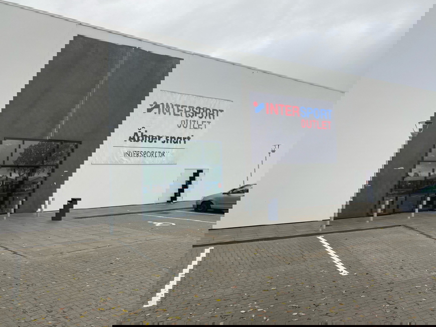 Det står klart, efter at Intersport Outlet har markeret deres åbning med et stort banner, på butiksfacaden.