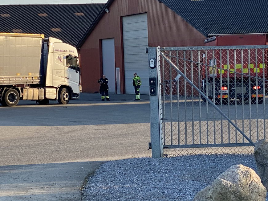 En udenlands indregistreret lastbil, lækkede tirsdag eftermiddag olie, på gårdspladsen ved Quistgaard, på Gl.Tårupvej ved Taulov.