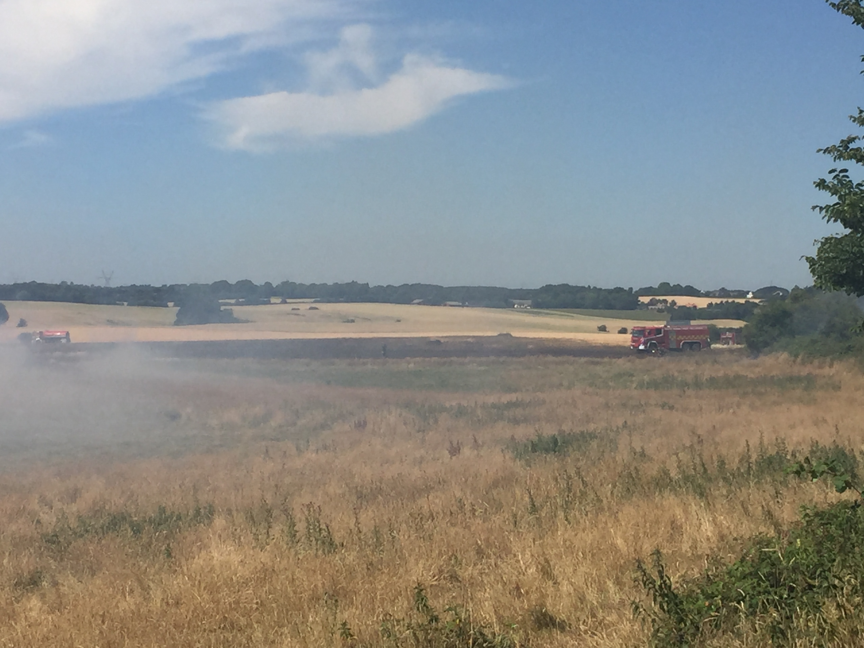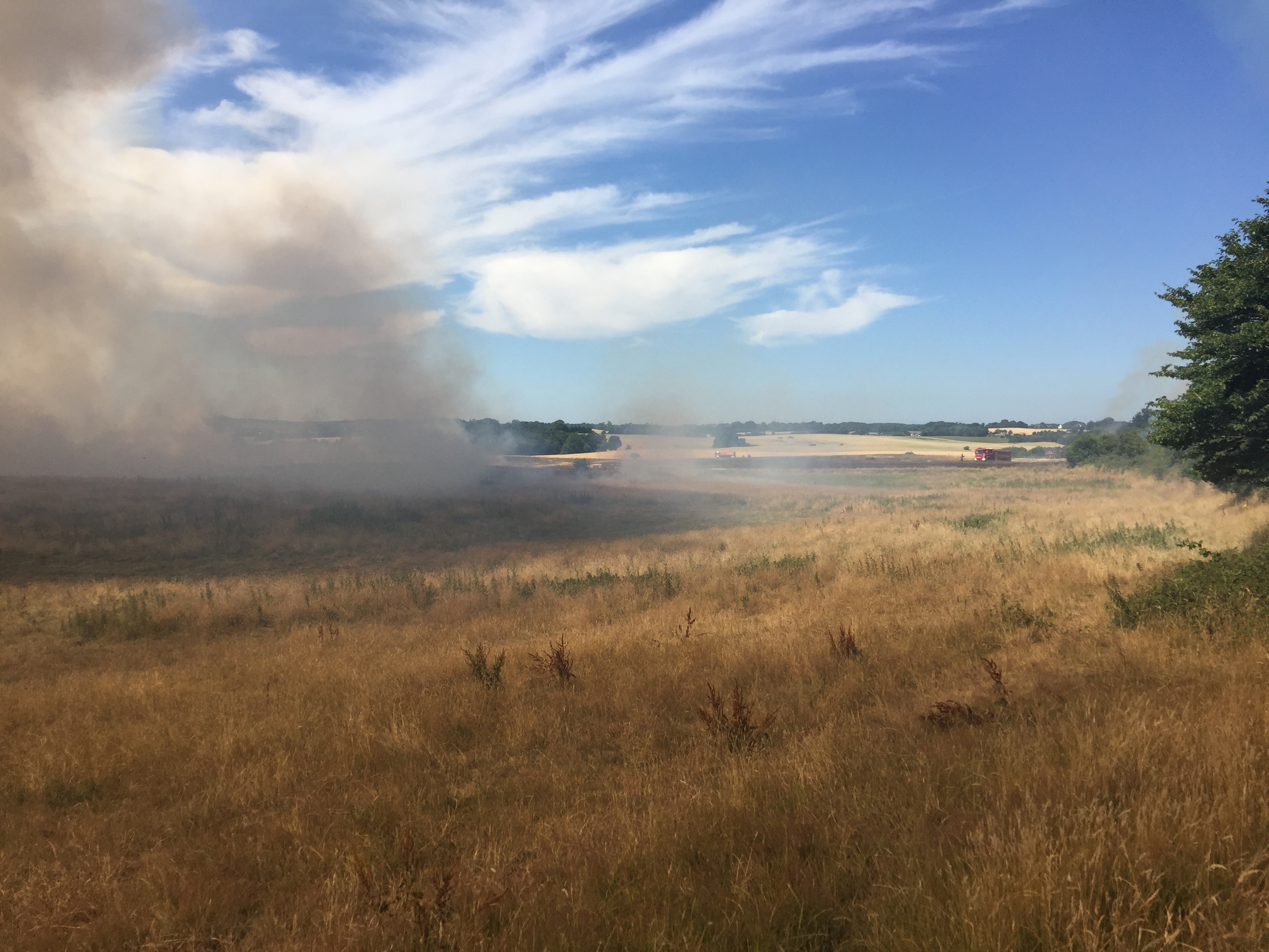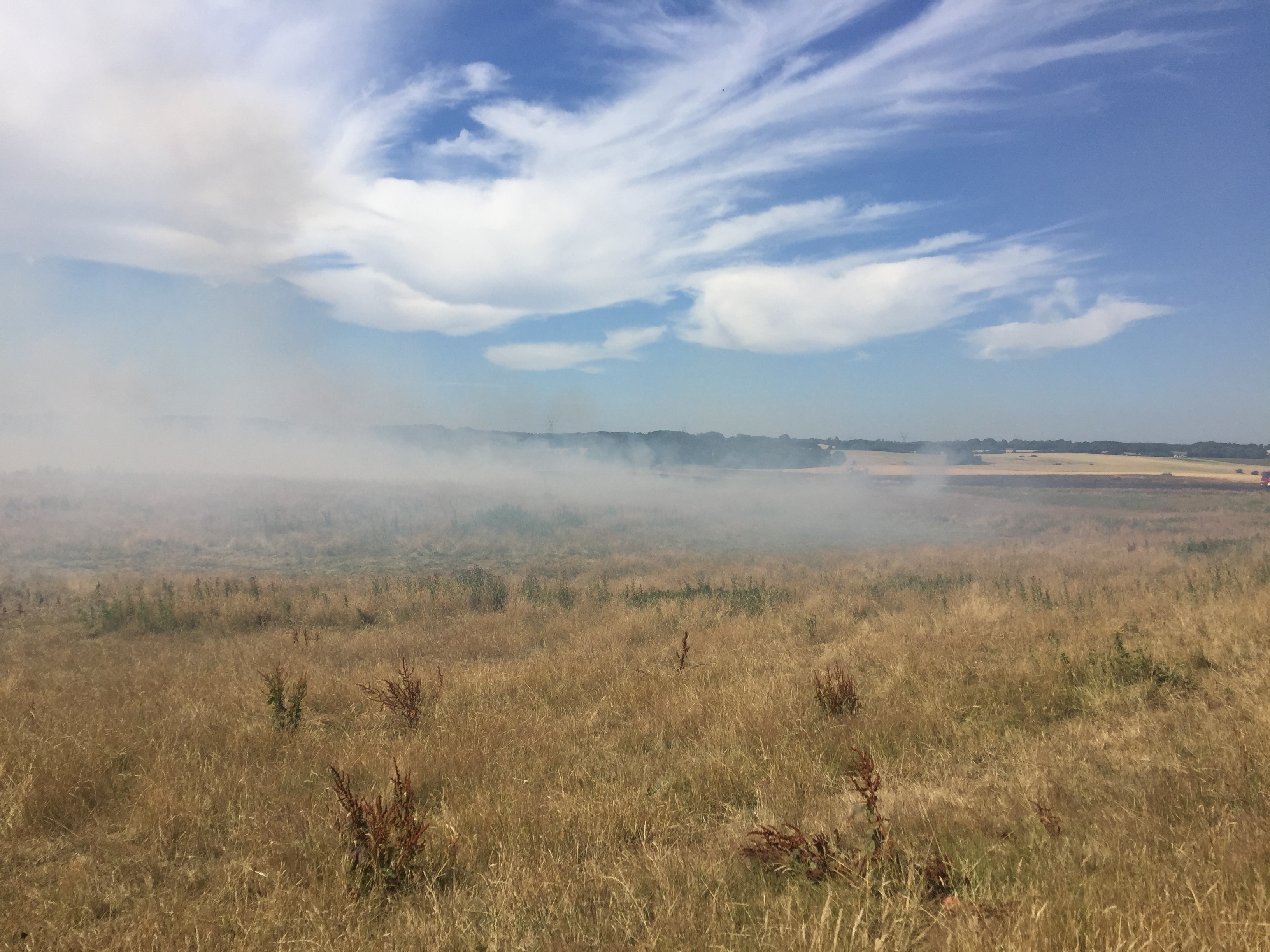 Det brænder flere steder på marken, og ilden breder sig hurtigt.
