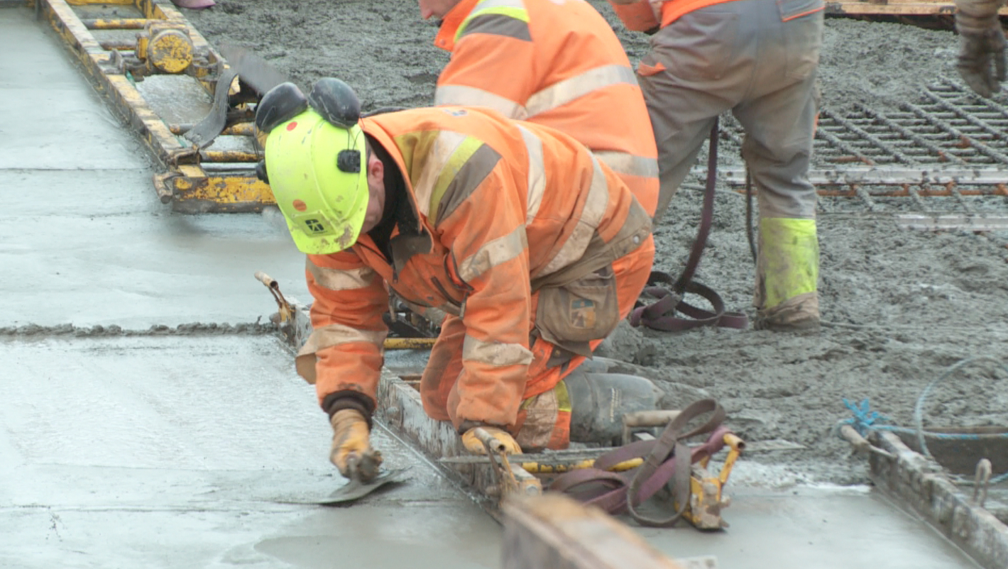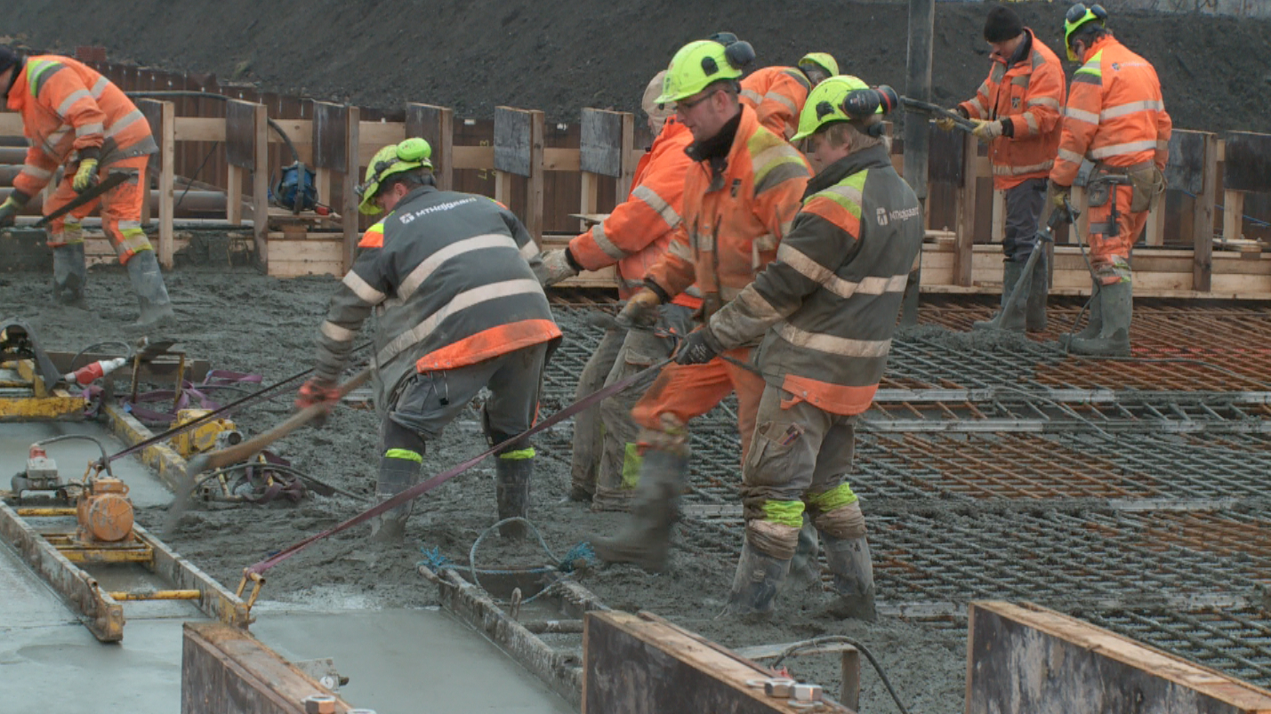 Adskillige tonstunge lastbiler har dagen igennem kørt beton til FredericiaC, hvor støbearbejdet kunne afsluttes kl. 14.00.