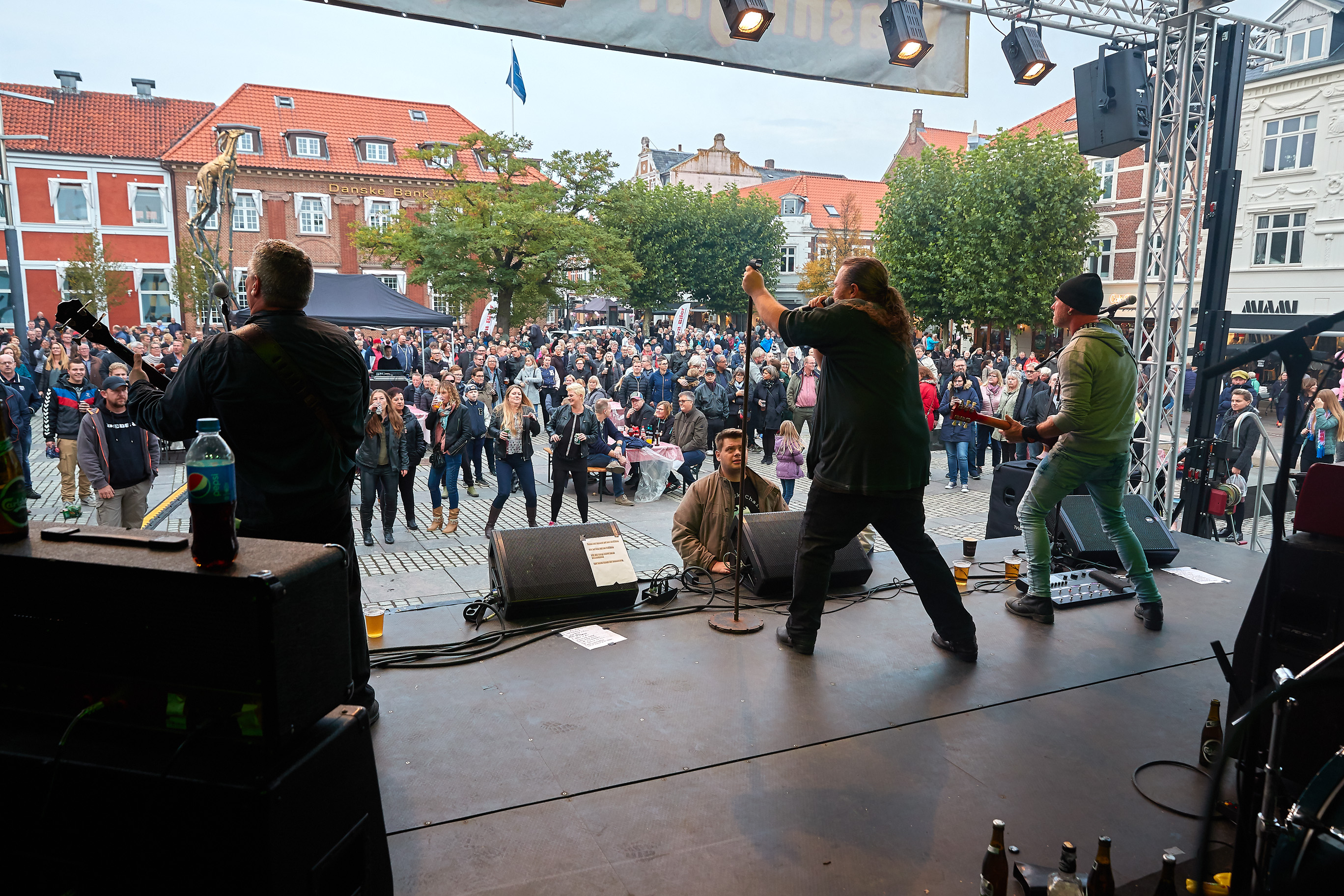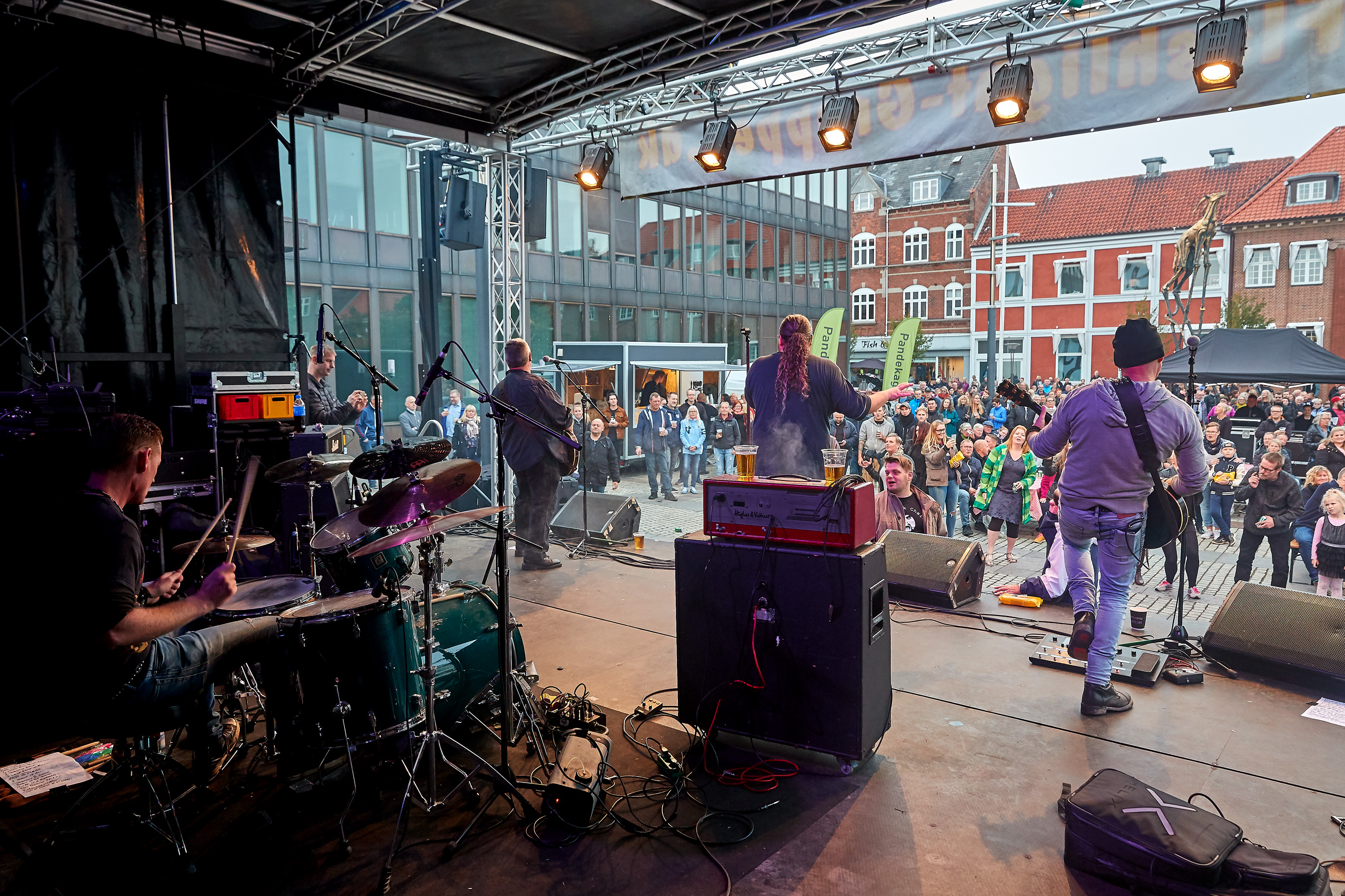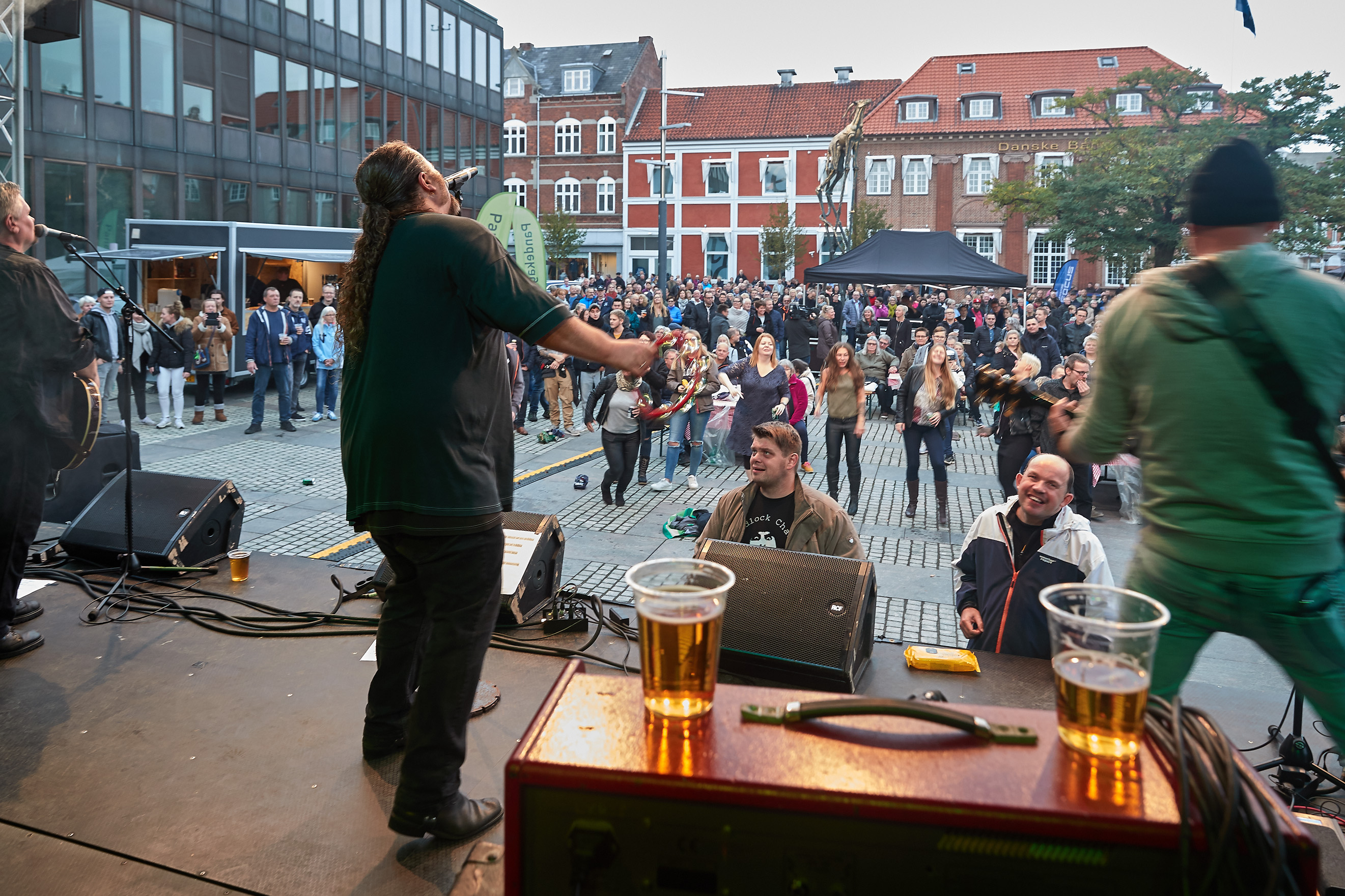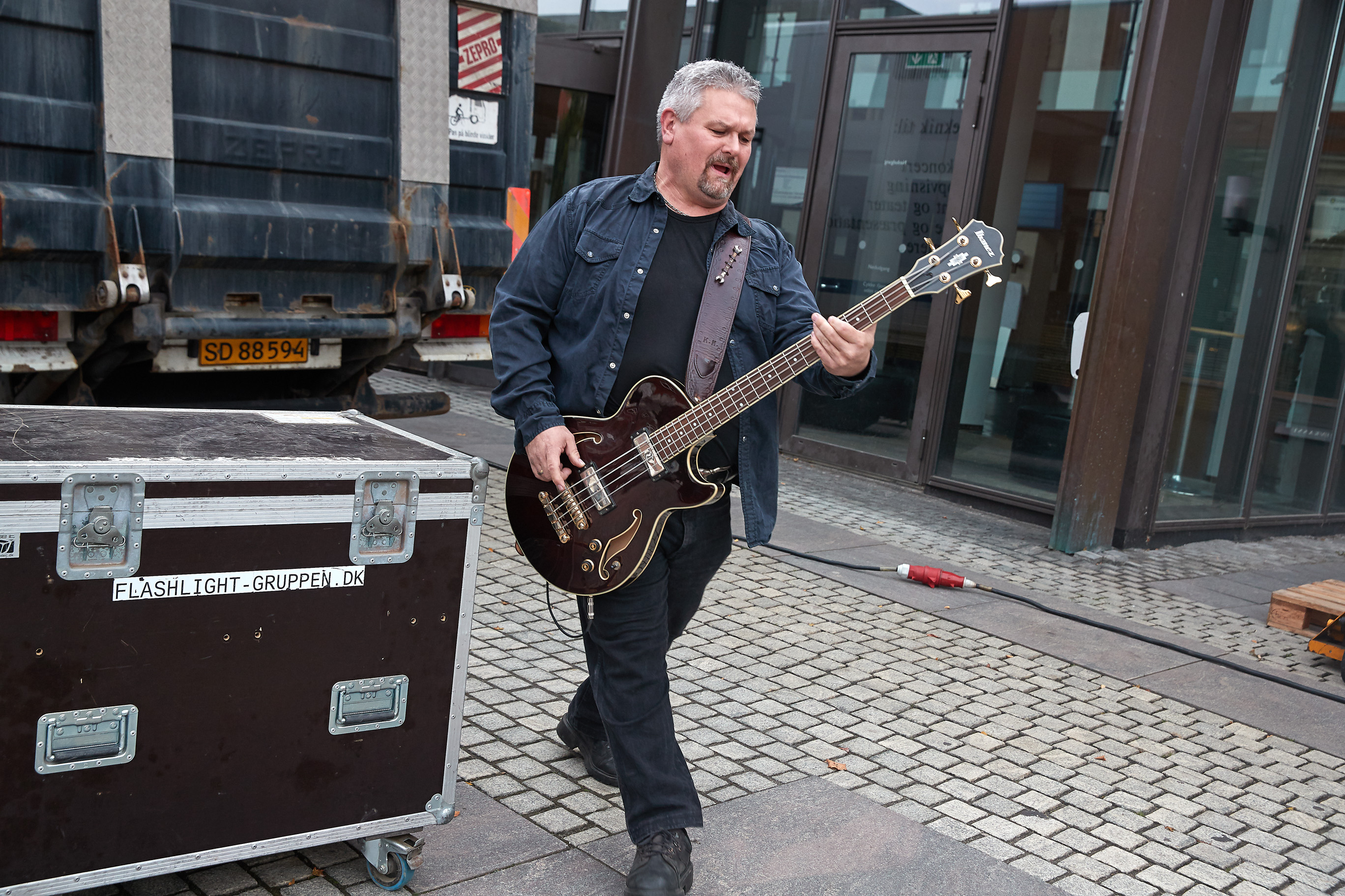 Det lokale skrammelrock orkester. – Padlock Chain – spillede fredag for brysterne, på Rådhuspladsen i Fredericia