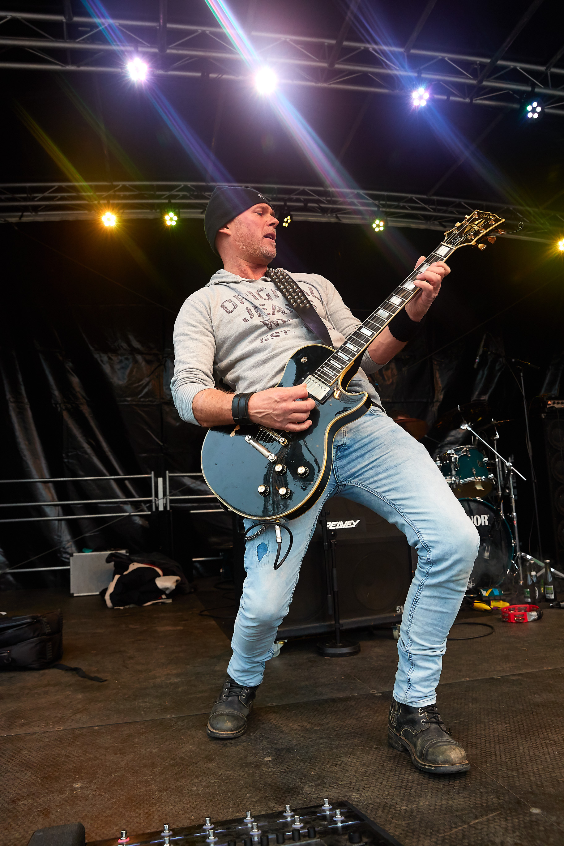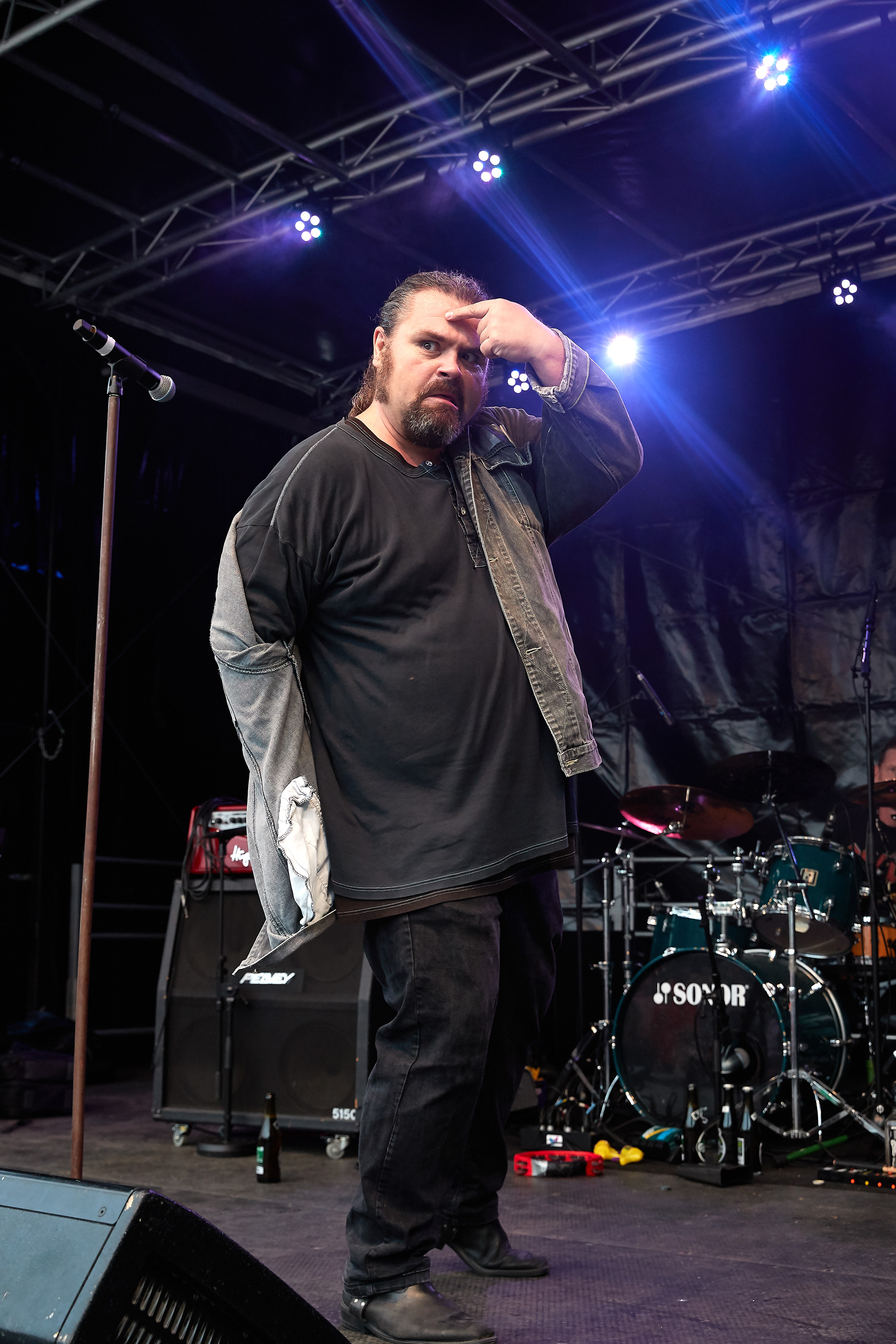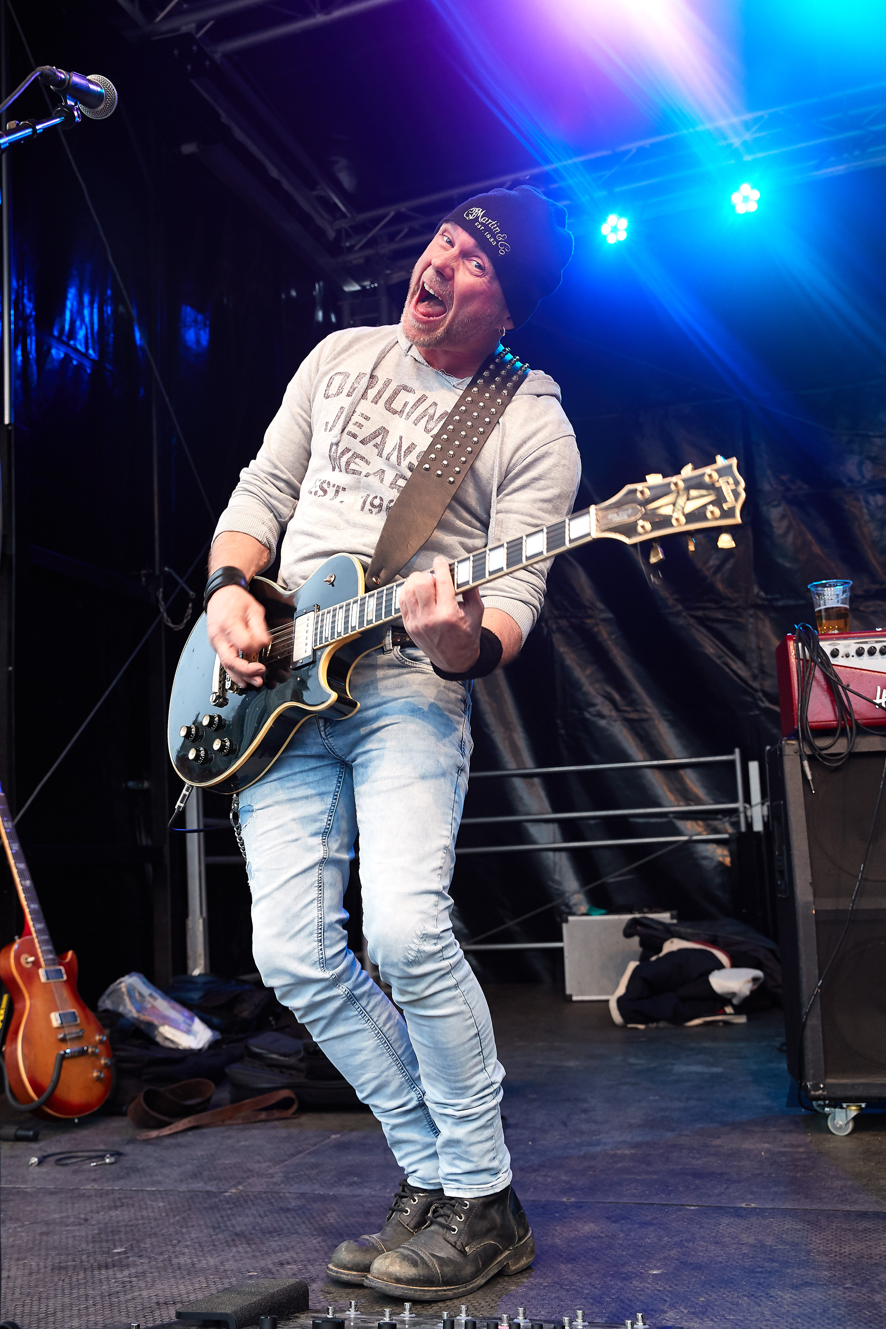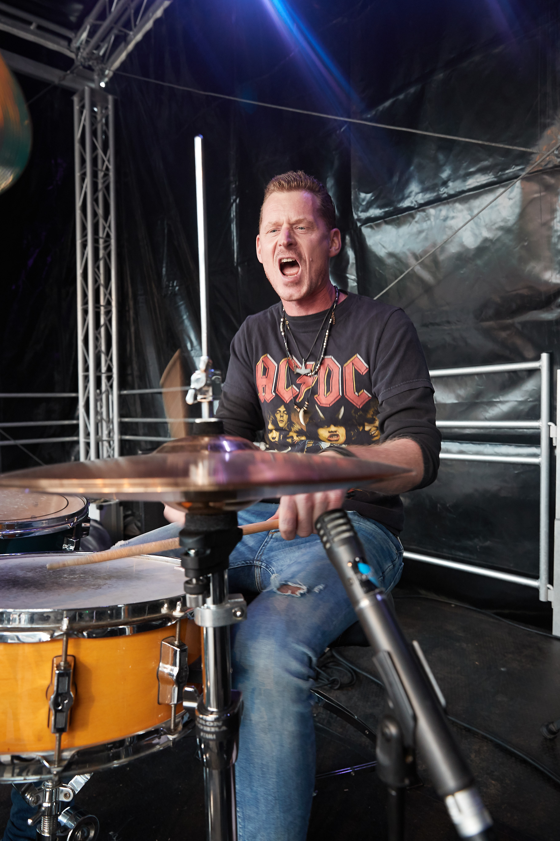 Det lokale skrammelrock orkester. – Padlock Chain – spillede fredag for brysterne, på Rådhuspladsen i Fredericia