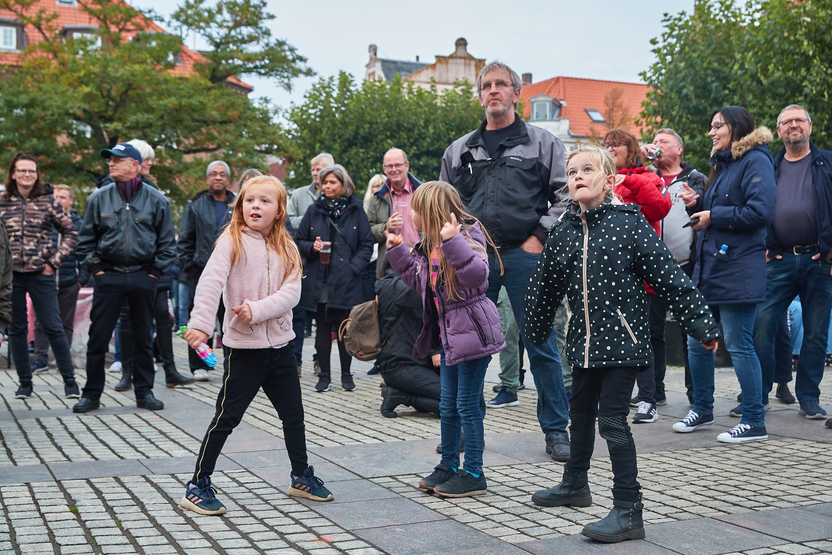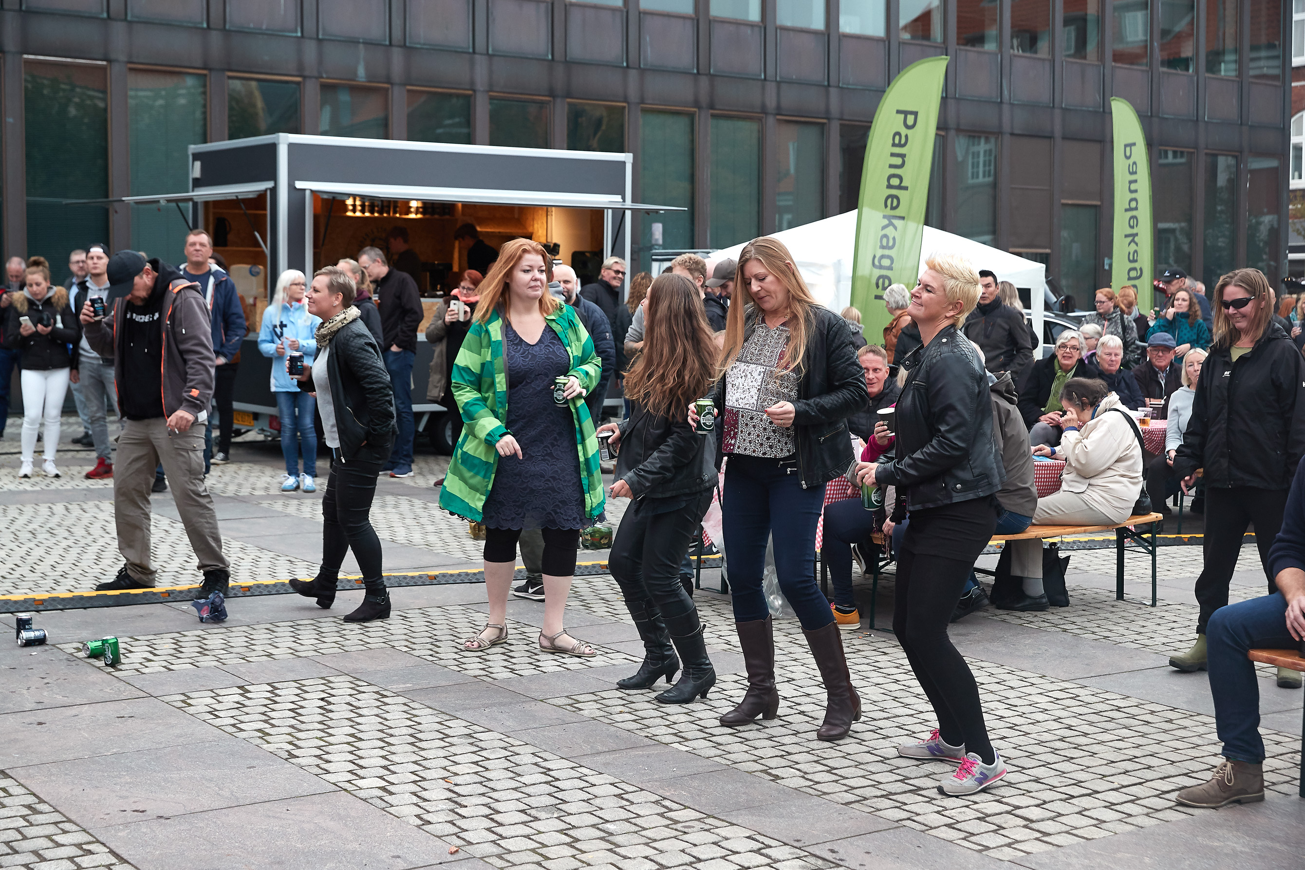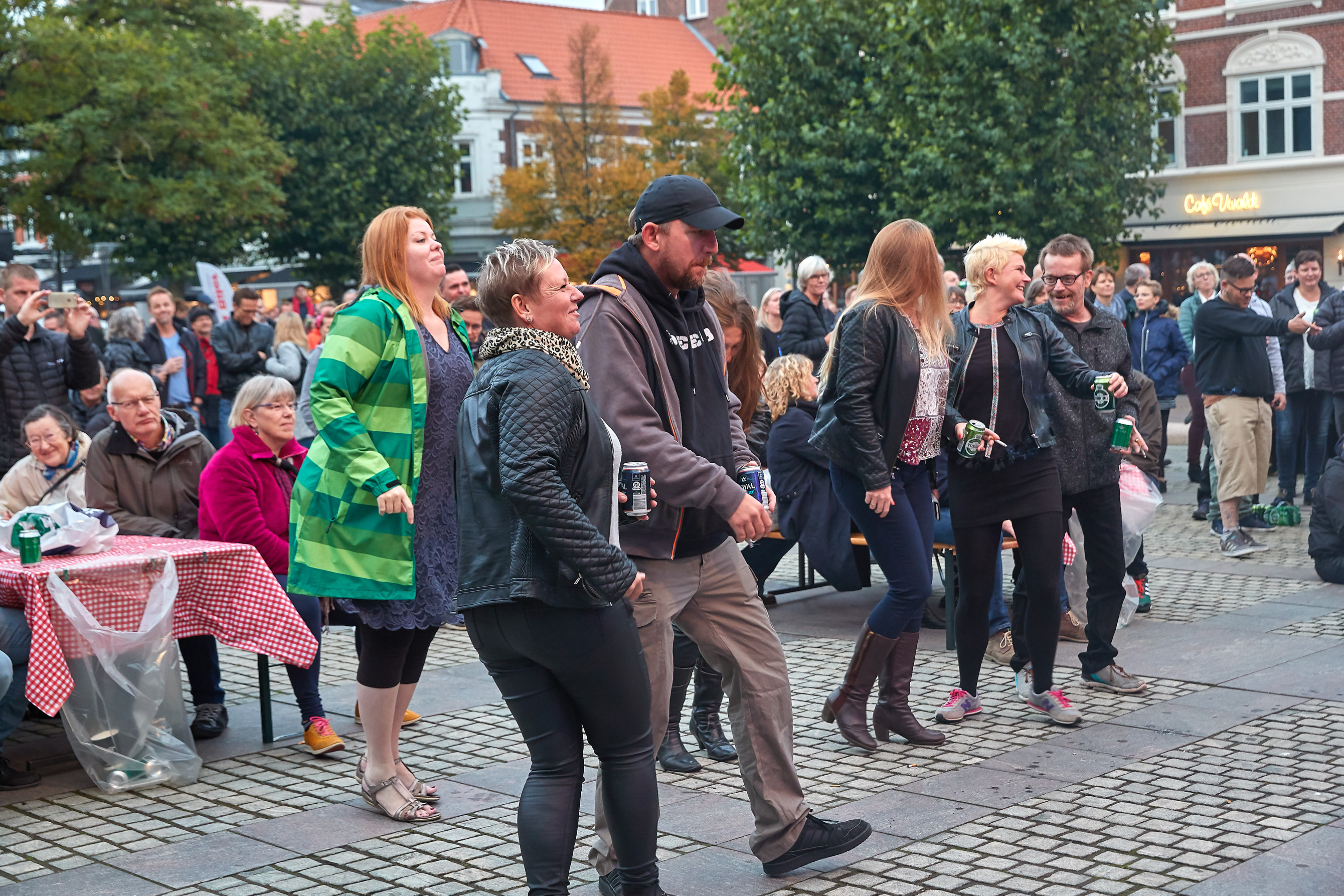 Der var skrammelrock for alle pengene – og en lille pose støj, da det lokale orkester Padlock Chain, spillede til ære for brysterne, på Rådhuspladsen i Fredericia.