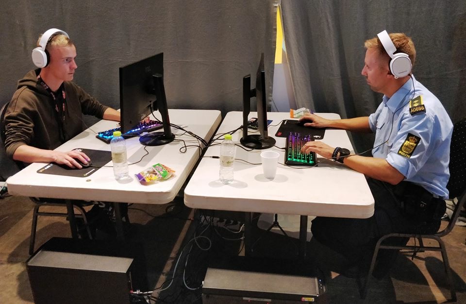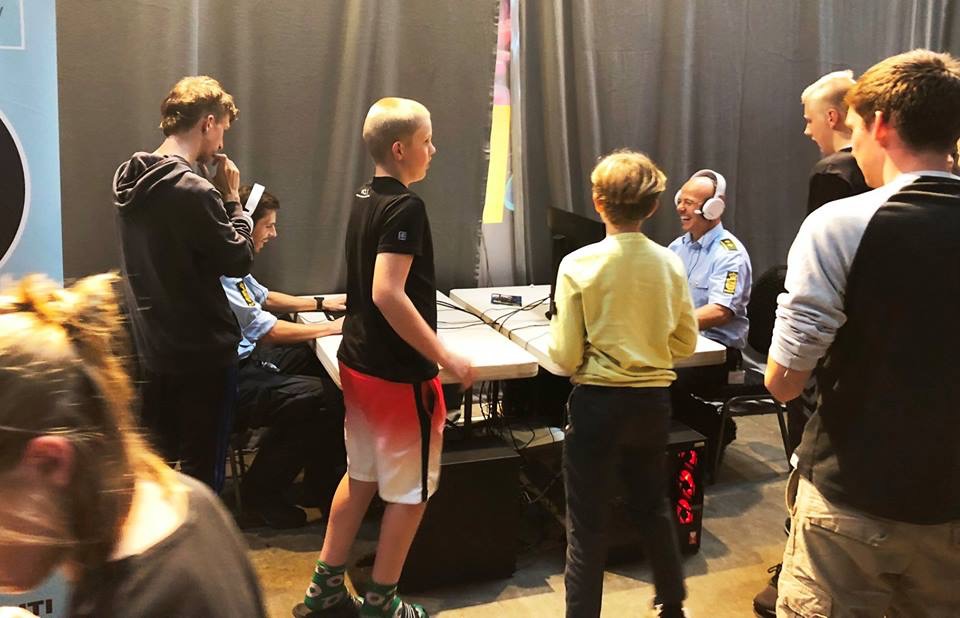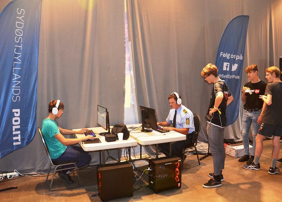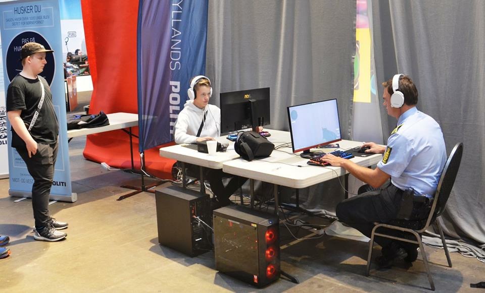 I forhallen kunne deltagerne nemlig få en snak med betjente fra Sydøstjyllands Politi og it-efterforskere fra Nationalt Cyber Crime Center, NC3, prøve kræfter med dele af optagelsesprøven til Politiskolen, komme helt tæt på politiets biler – og altså udfordre politiet i Counter Strike.