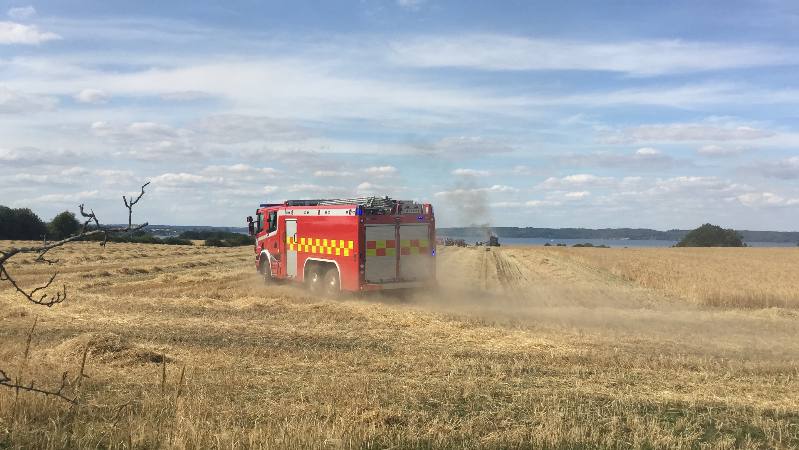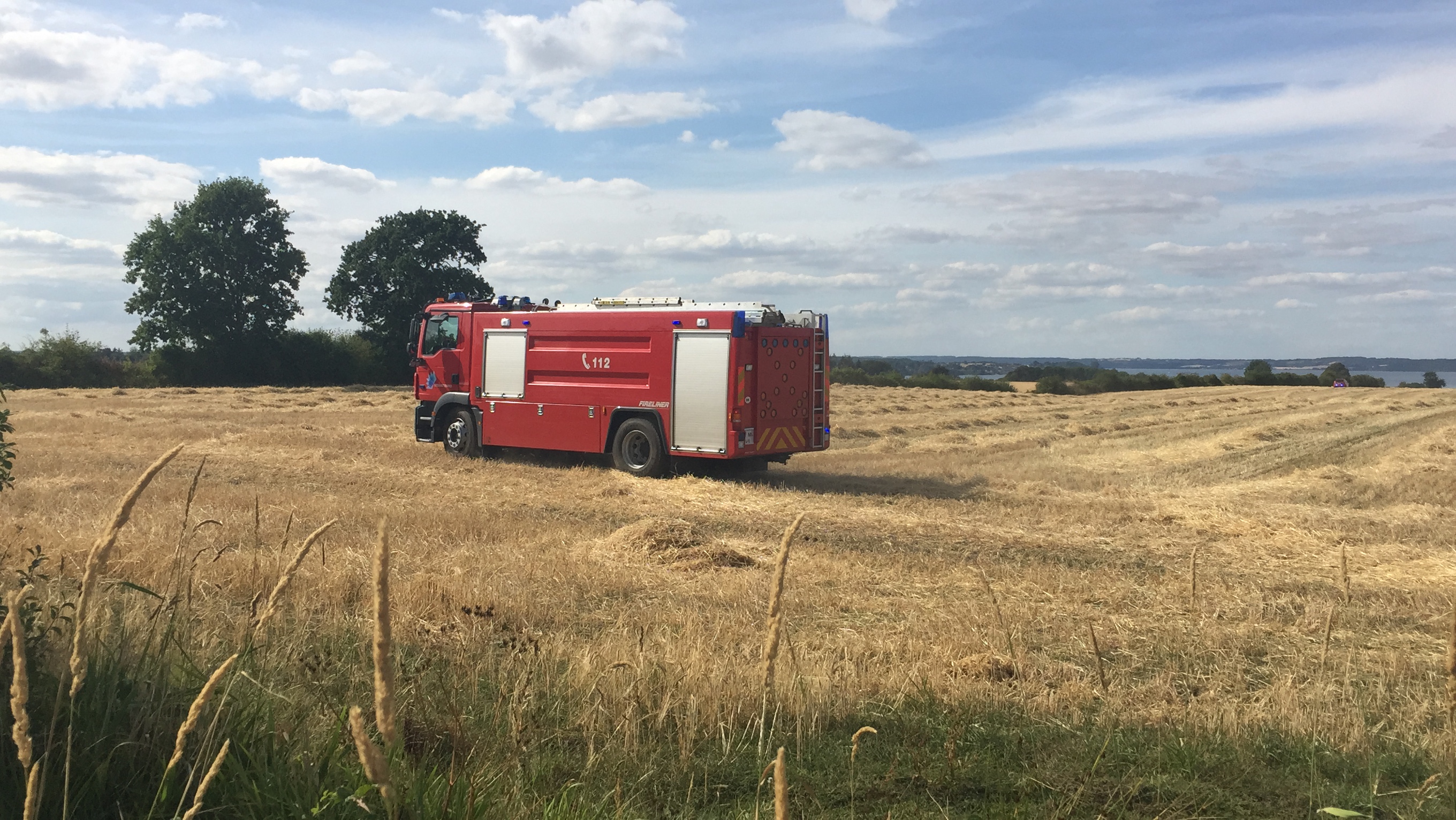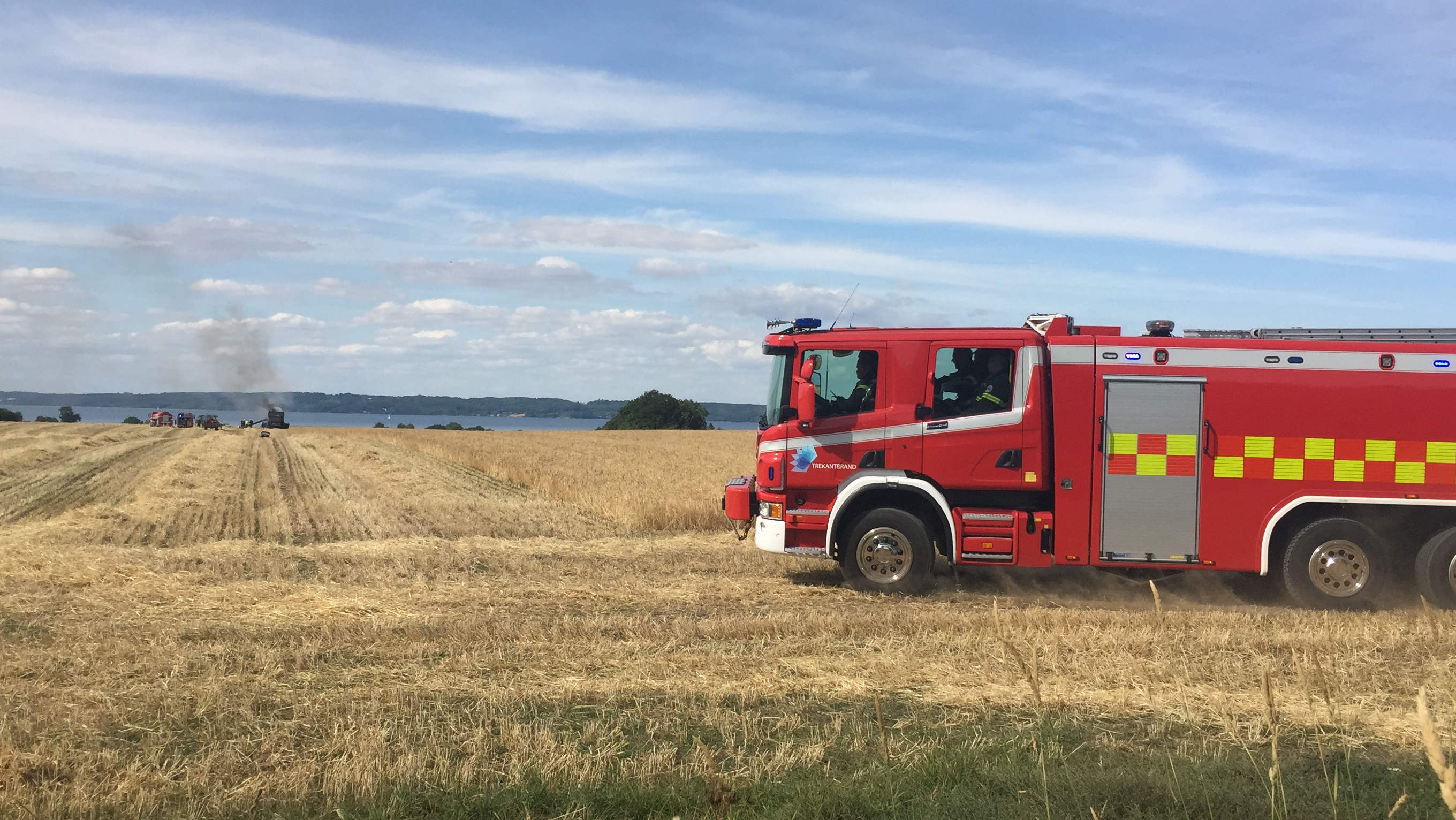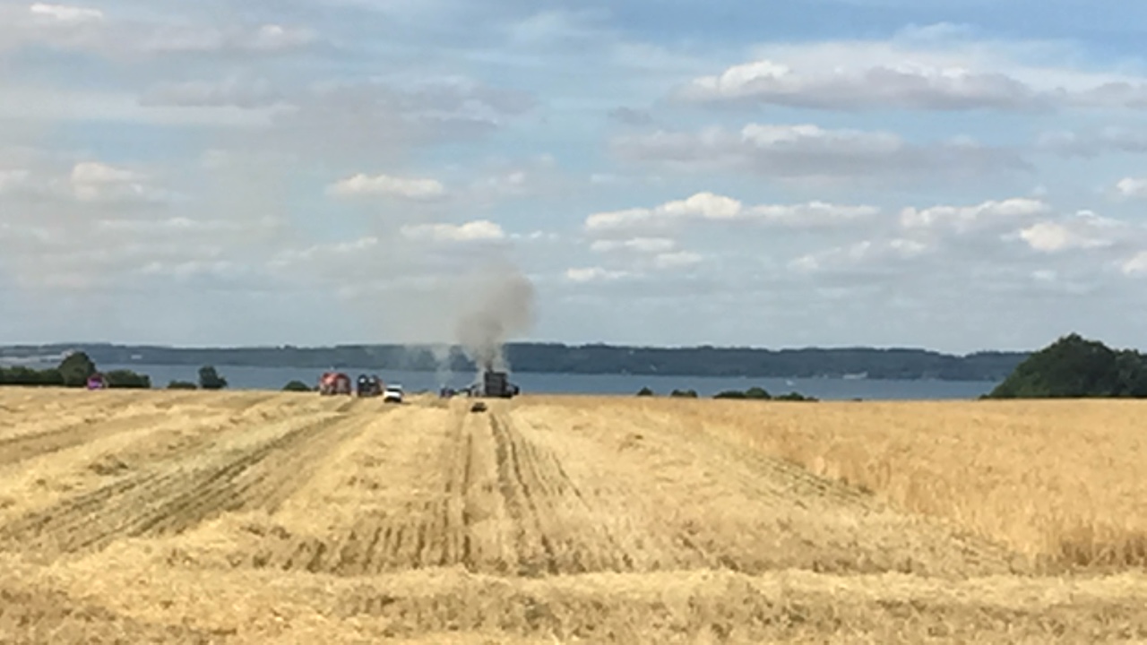 Onsdag eftermiddag udbrød der brand i en mejetærsker under høst i Trelde