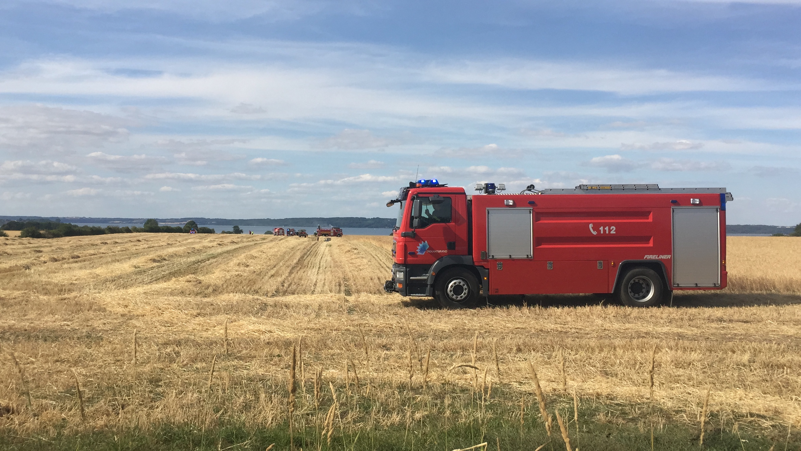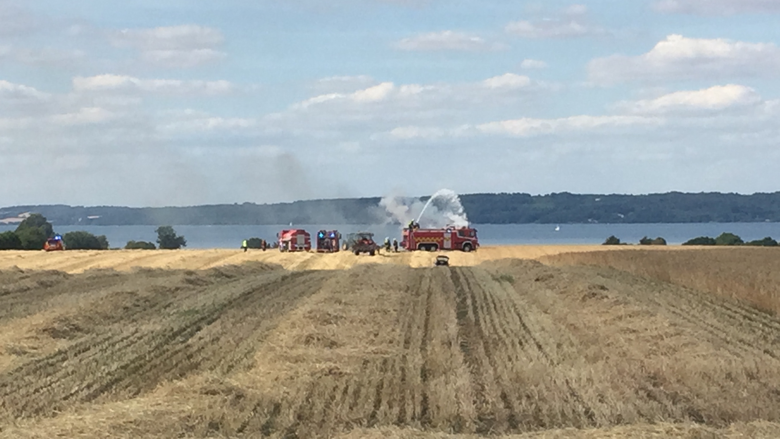 Onsdag eftermiddag udbrød der brand i en mejetærsker, der var i gang med at høste en mark i Trelde.