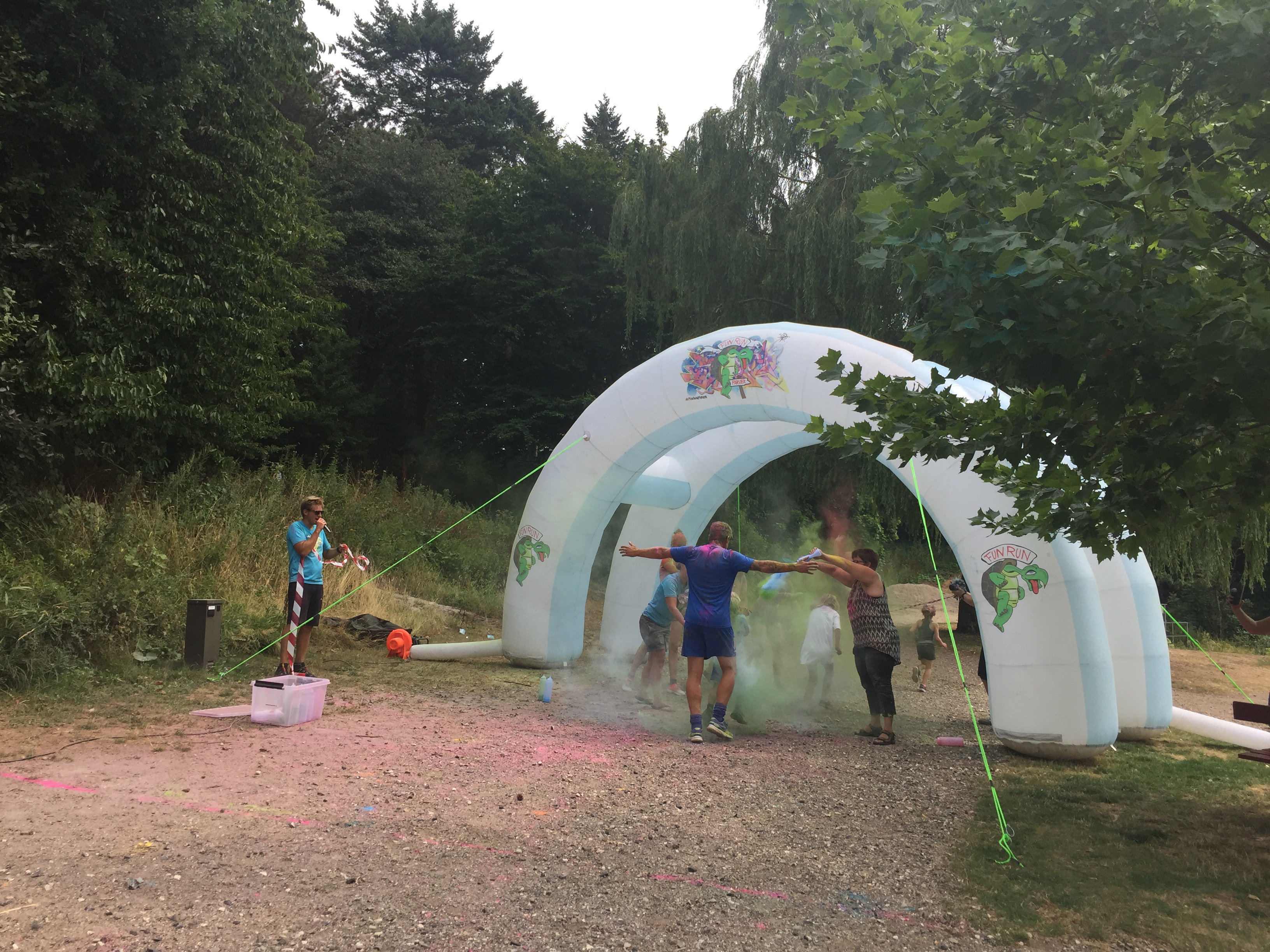 Der var fest, farver – og sved på panden, da løberne ved årets Madsby Fun Run Sommerløb, tossede igennem farveskyer i den populære legepark.