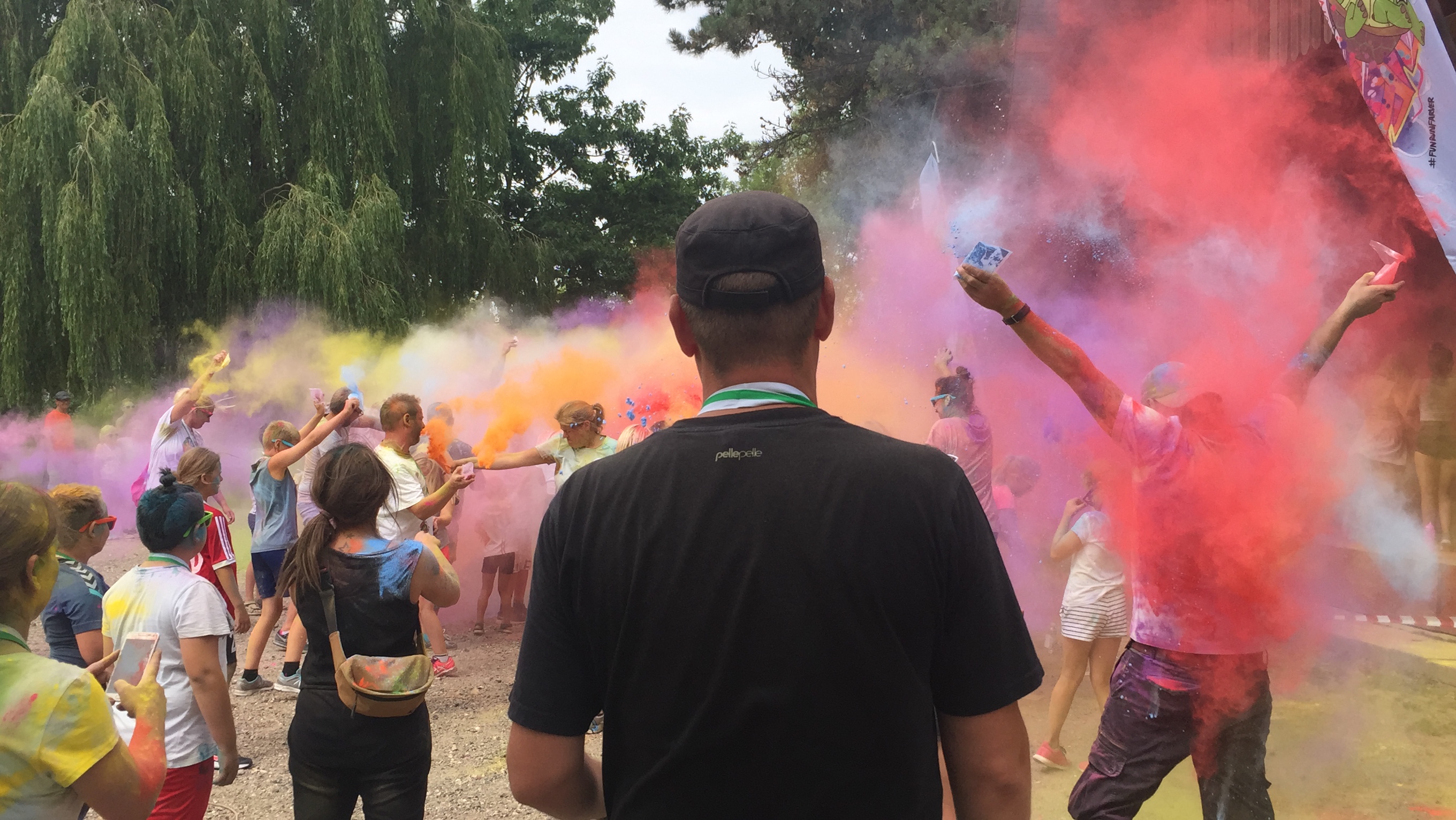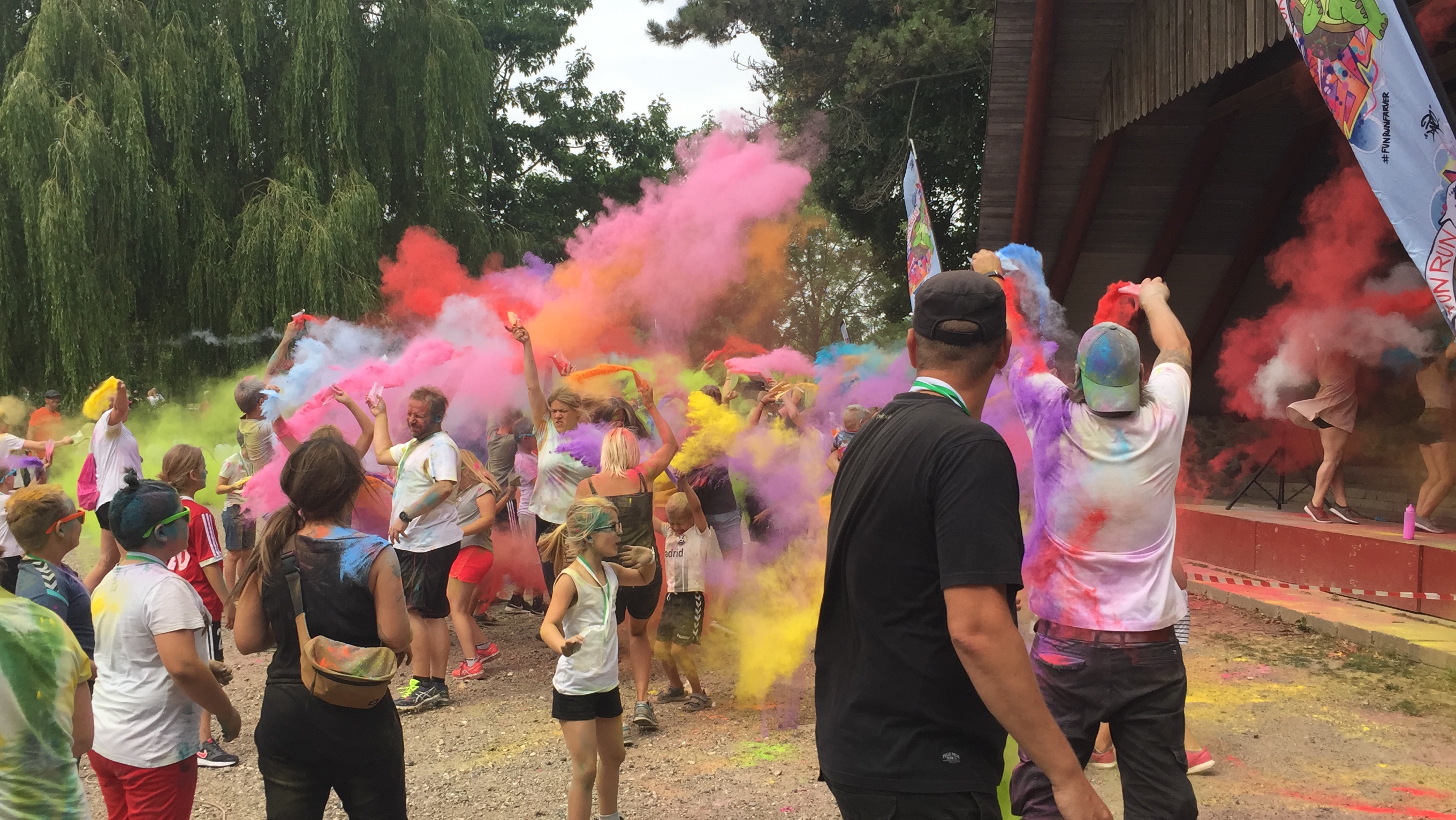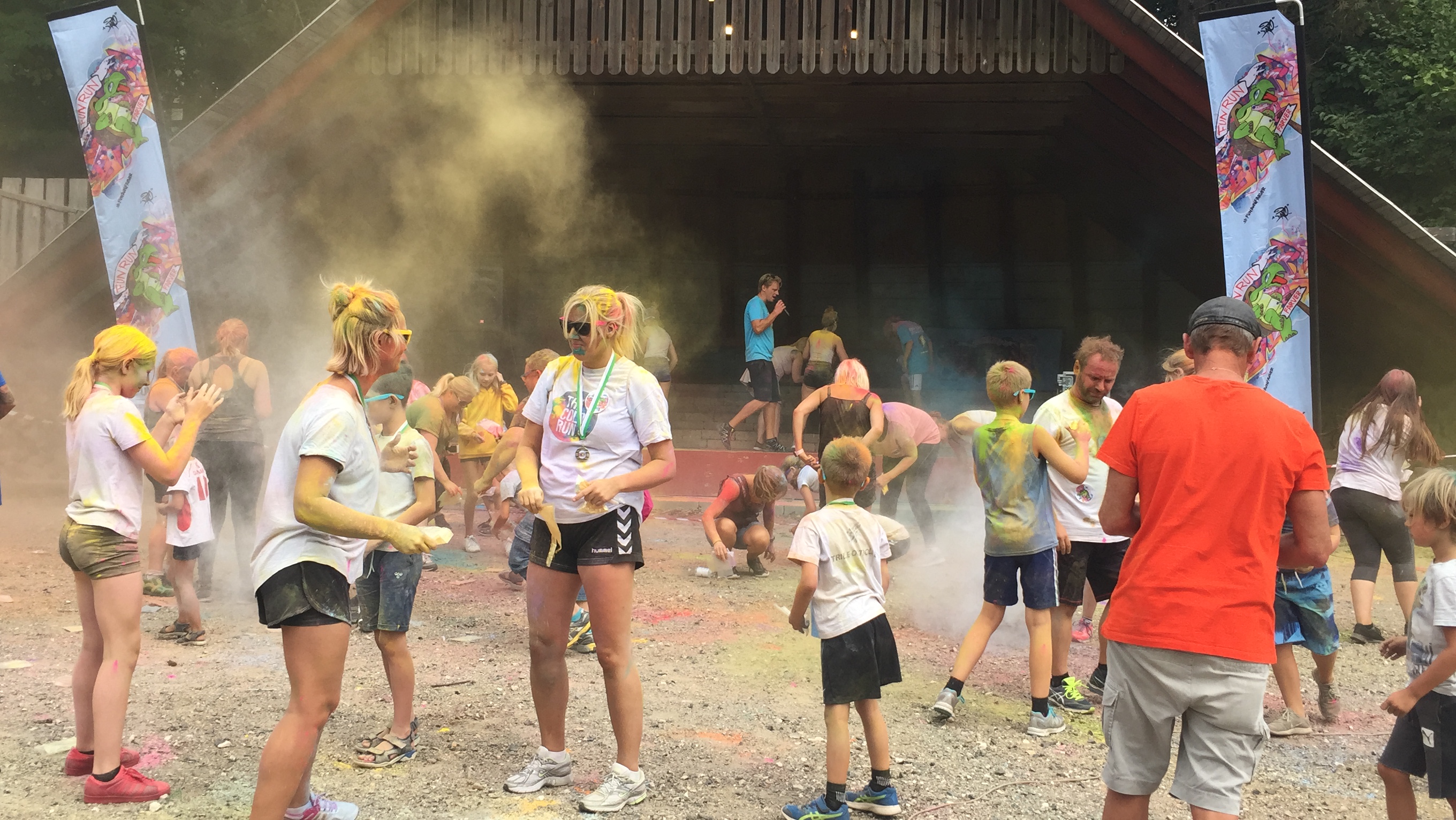 Masser af farver og musik, der sætter kolorit på oplevelsen. Farverne er naturlige og uskadelige for naturen, dog skal man undgå at få alt for meget farvepulver i øjnene.Farverne forsvinder hurtigt, og kan børste af eller vaskes ganske let. Farver i håret og på huden er på samme måde ganske uskadeligt.