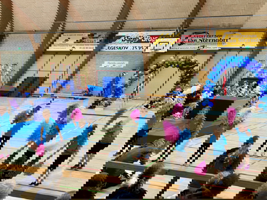 Den udsendte indbydelse var målrettet til alle børn, unge, forældre og bedsteforældre i hele sognet. Og de mange fremmødte gik ikke forgæves, men oplevede at moderne gymnastik er både udfordrende og sjovt.