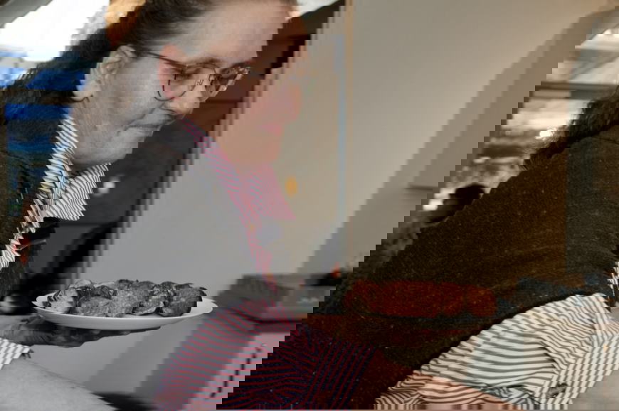 Mor til Mikkel Fredensborg Schmidt stod for 600 hjemmebagte æbleskiver. Foto: DanmarkC TV.