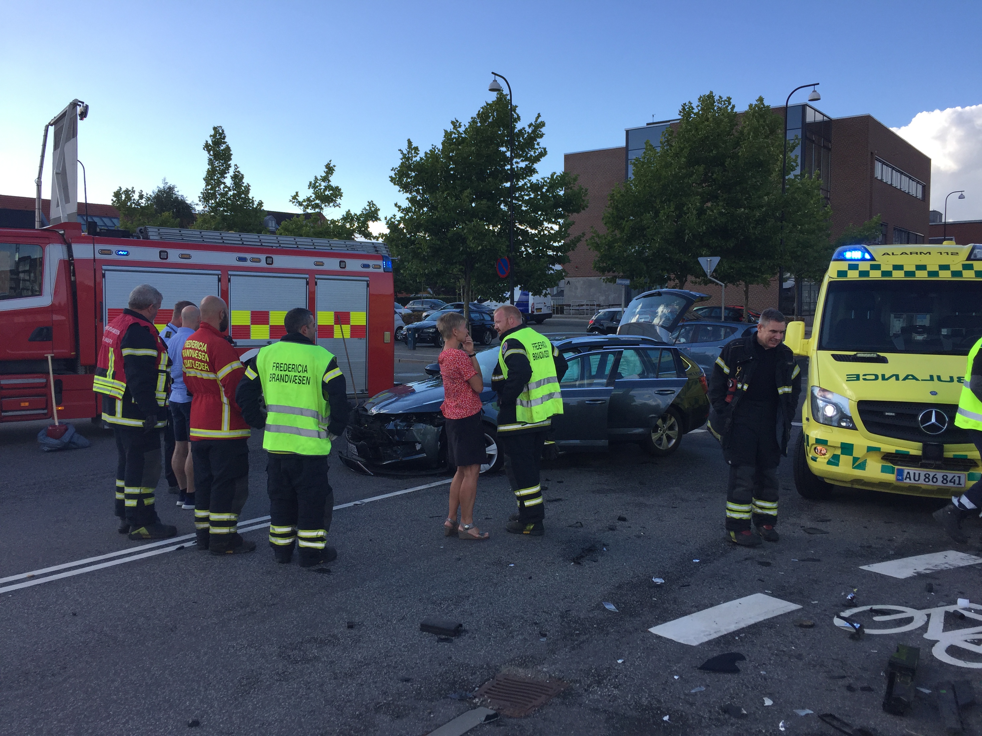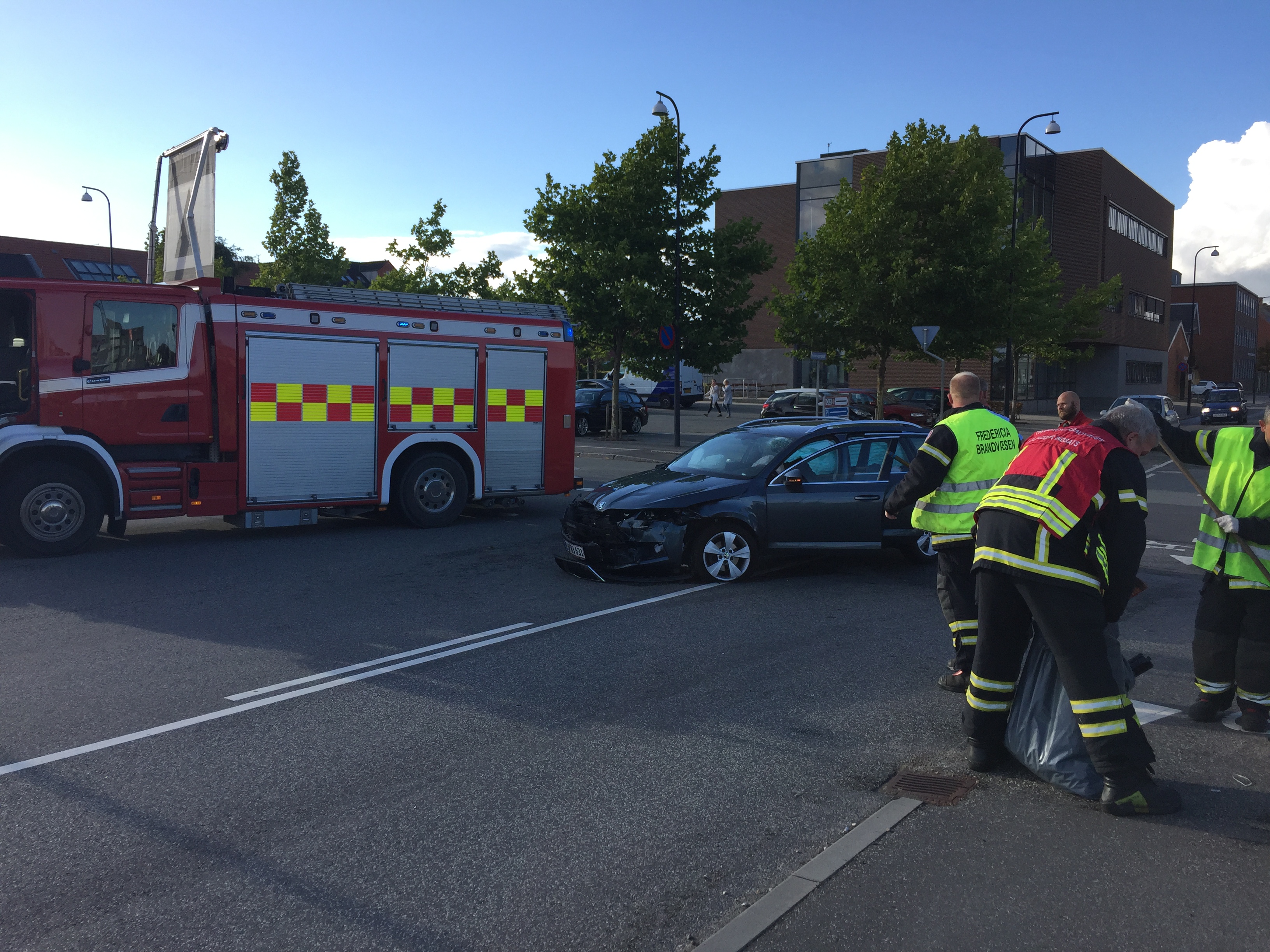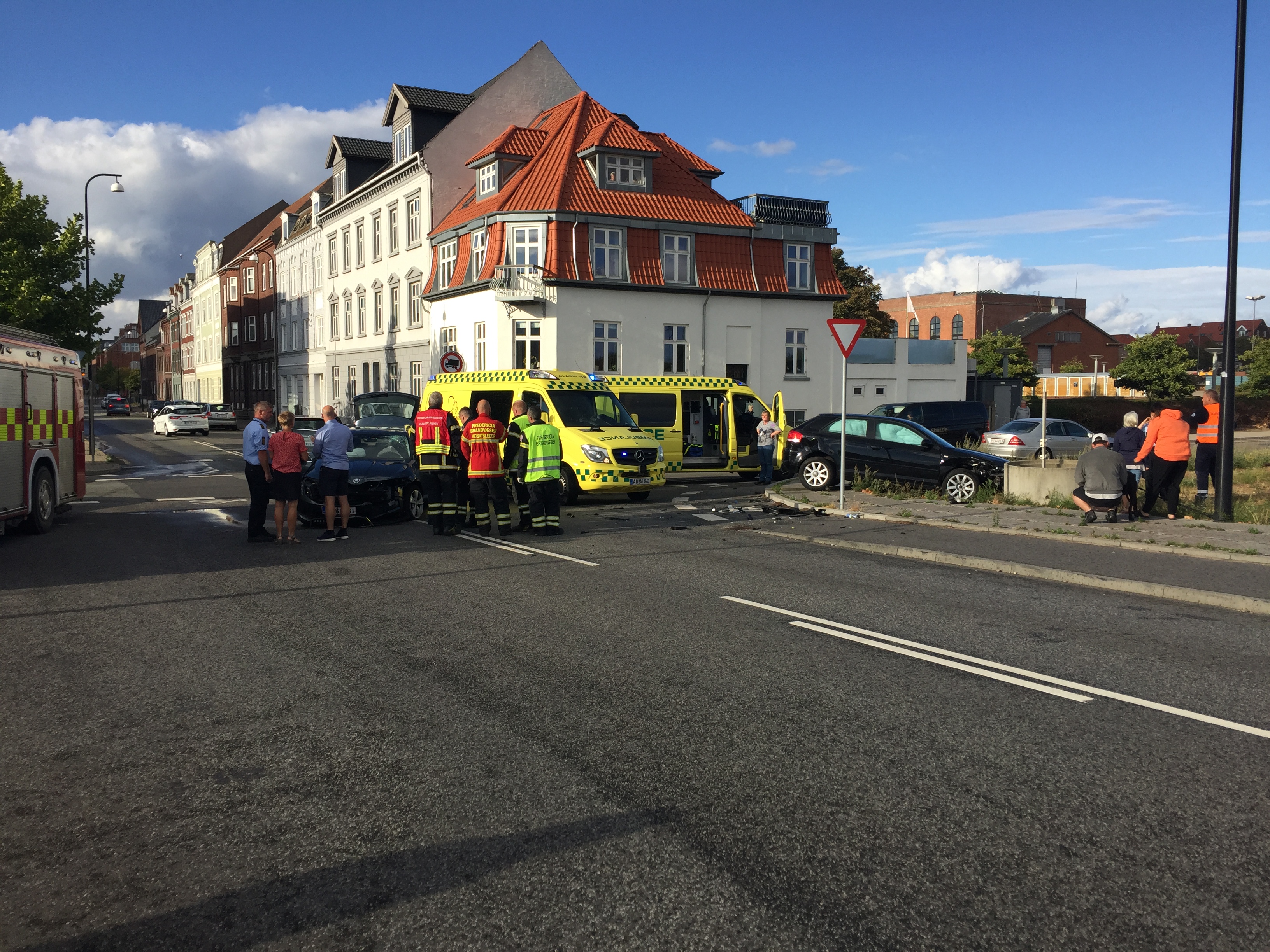 Lørdag aften klokken 18.28, stødte to biler sammen i krydset Købmagergade – Oldenborggade i Fredericia