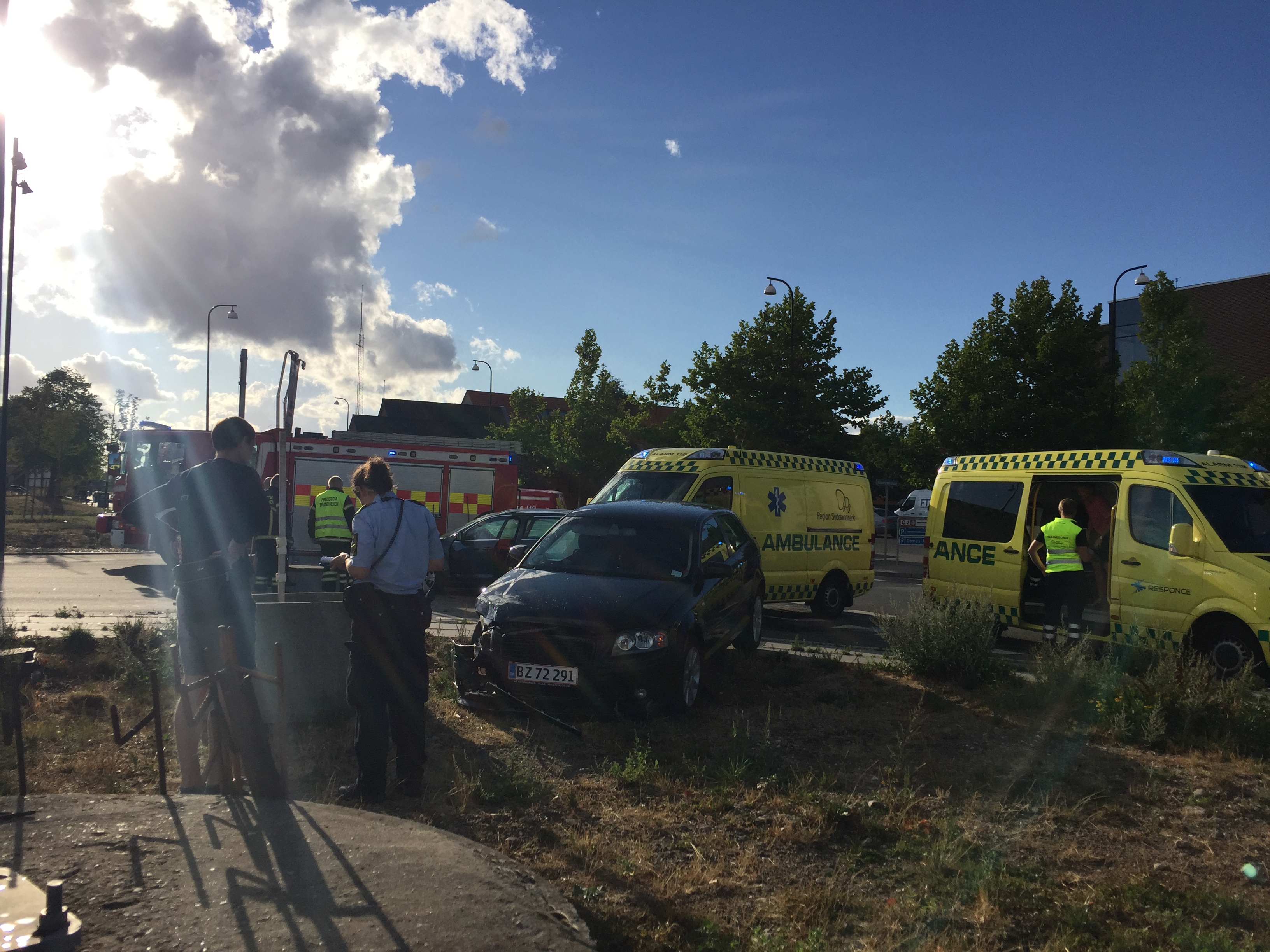Ved sammenstødet skete der udover mindre personskade, også en del materiel skade på de to implicerede køretøjer.
