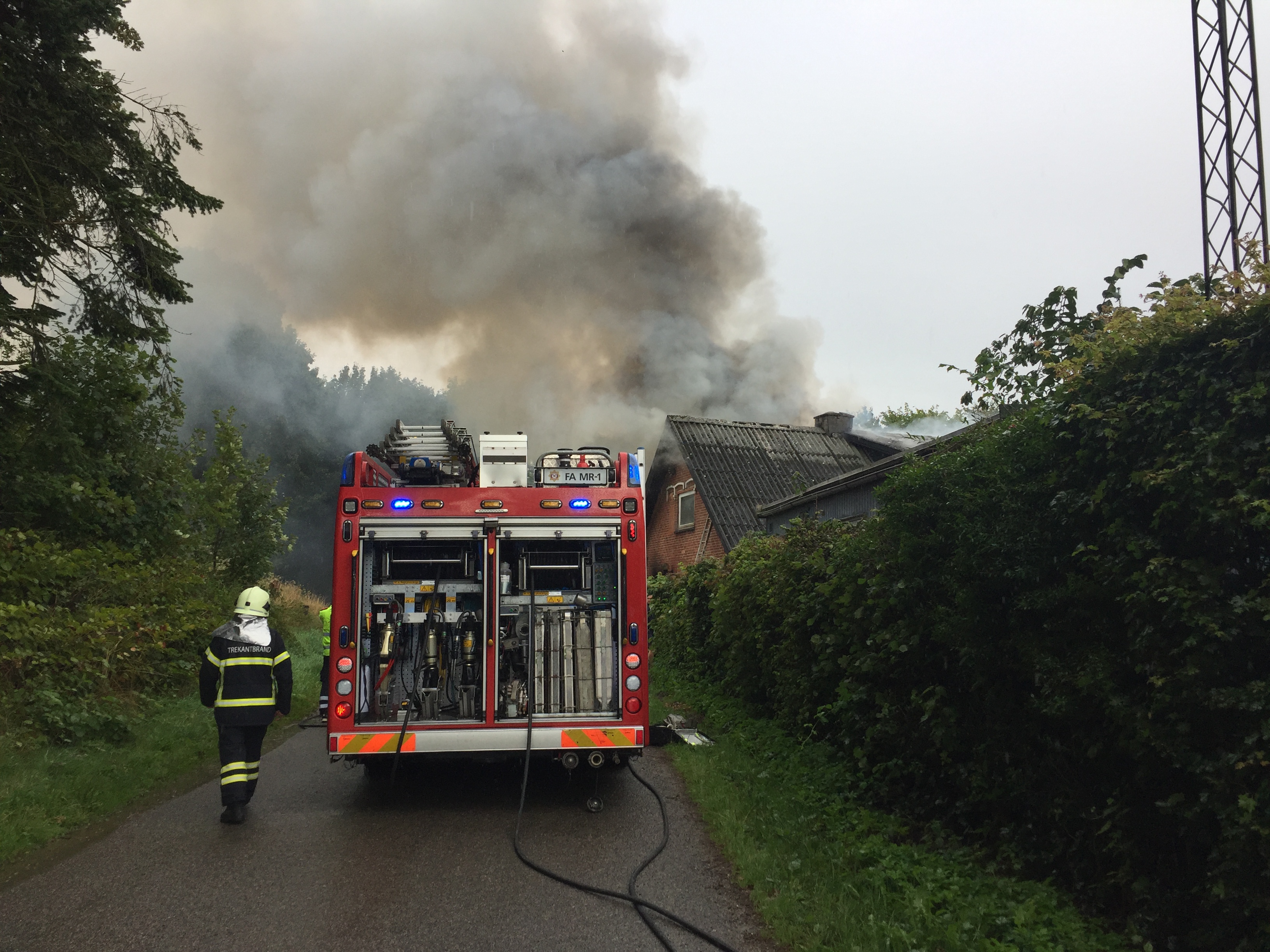 OPDATERET KLOKKEN 17.05 : Beredskaber fra flere af Trekant Brands stationer er tilkaldt til at assistere ved brandslukningen. Særligt vandtankvogne er rekvireret.
