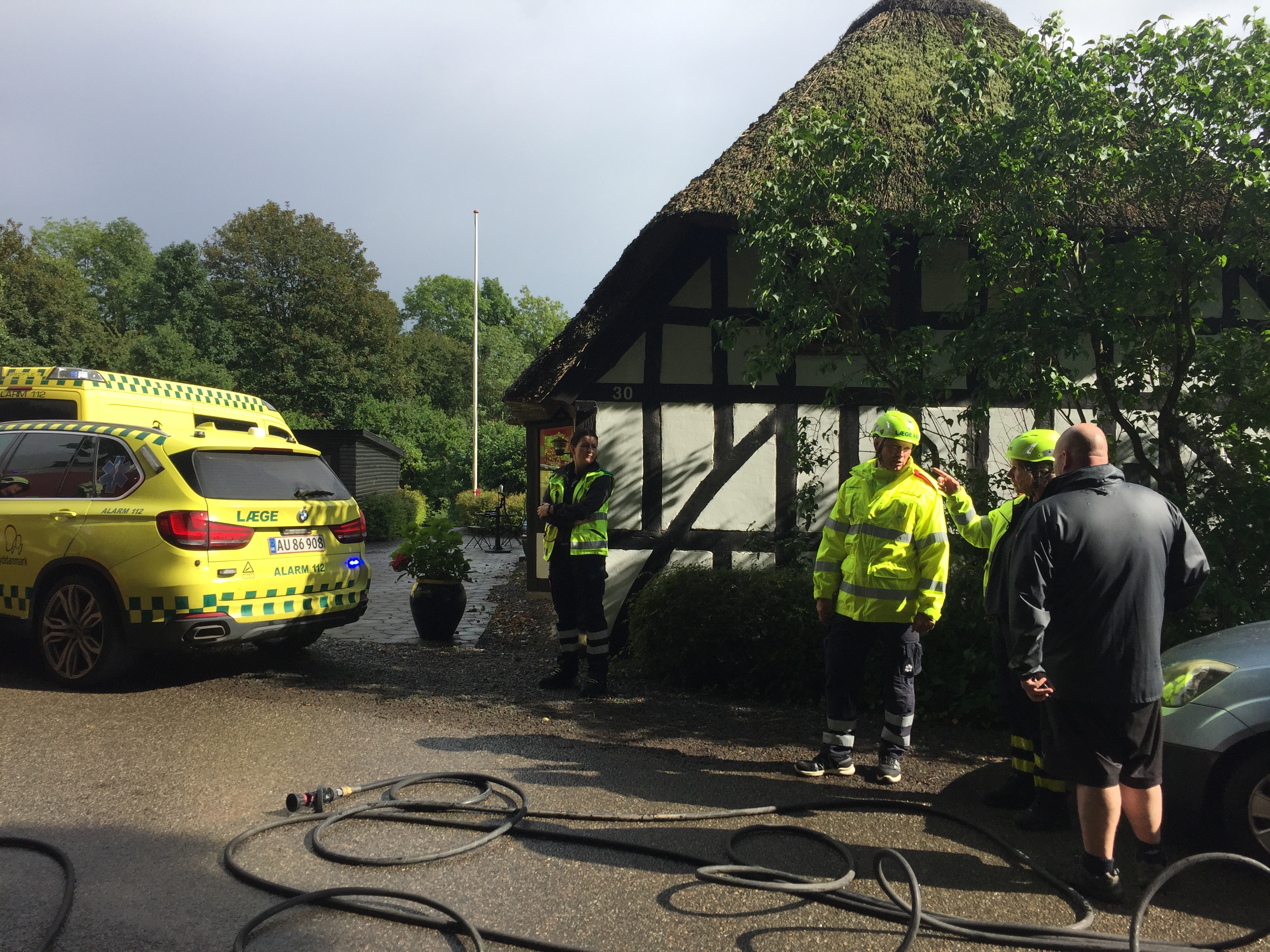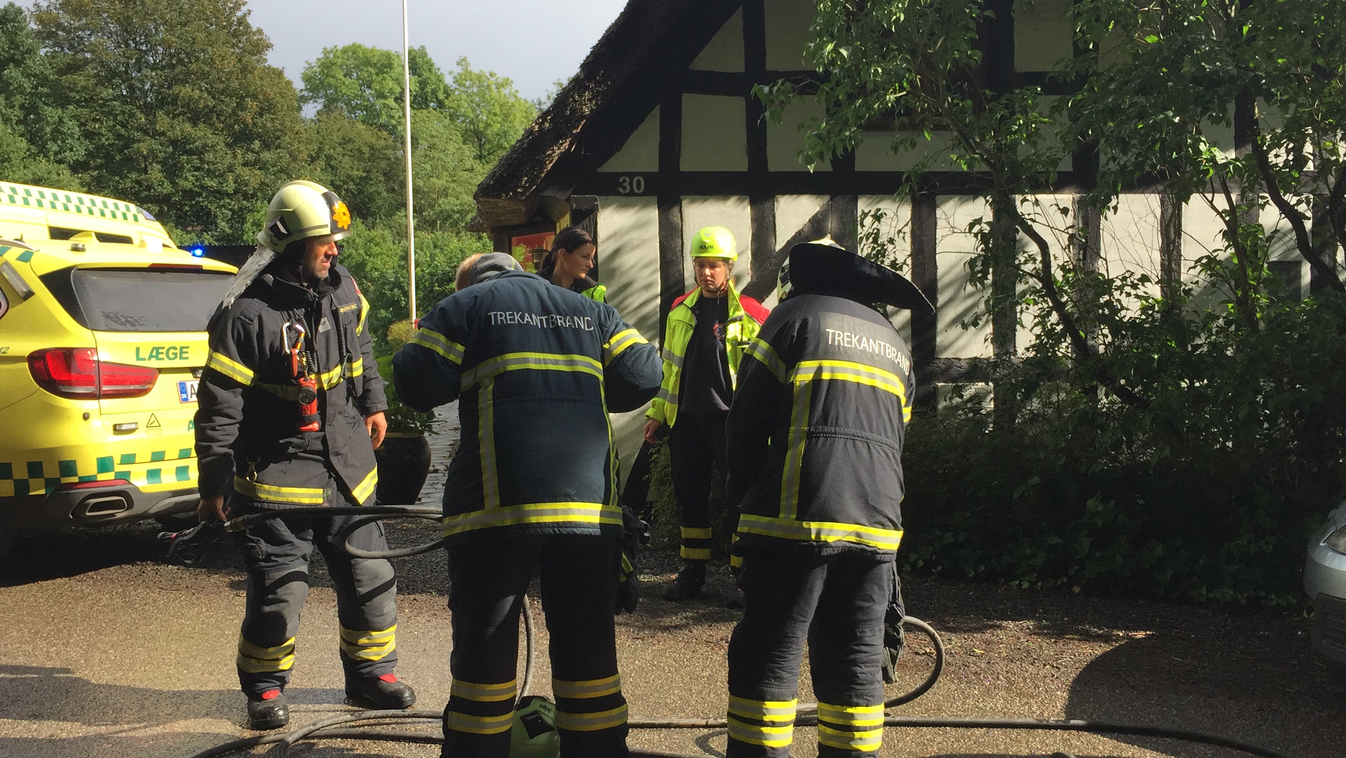 Læge og ambulance er netop ankommet til brandstedet.