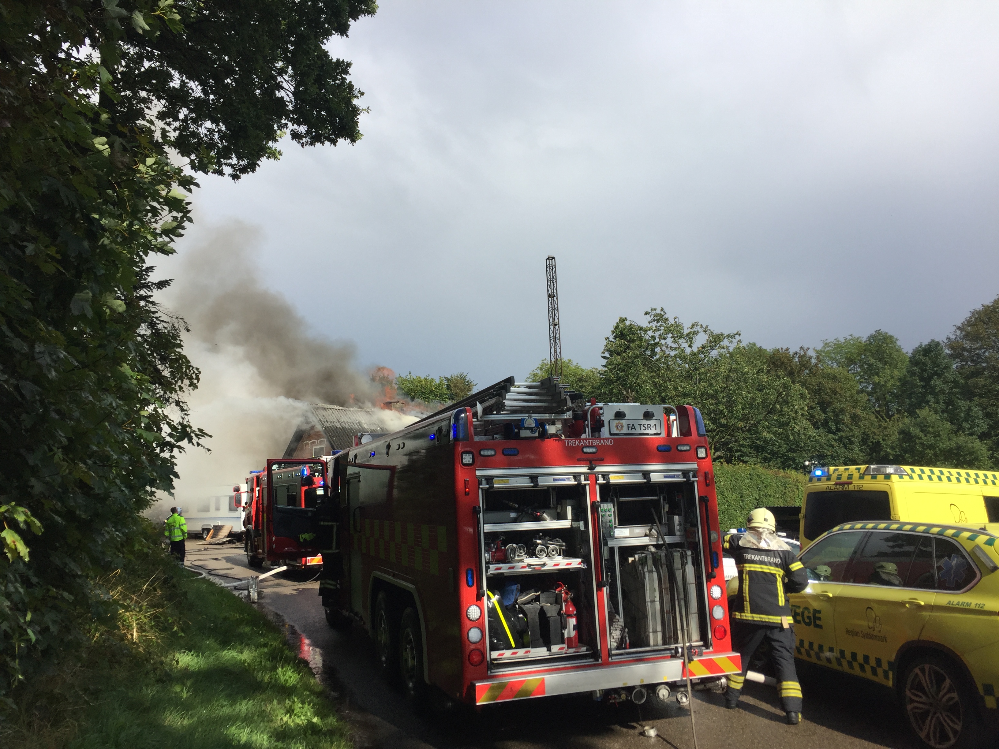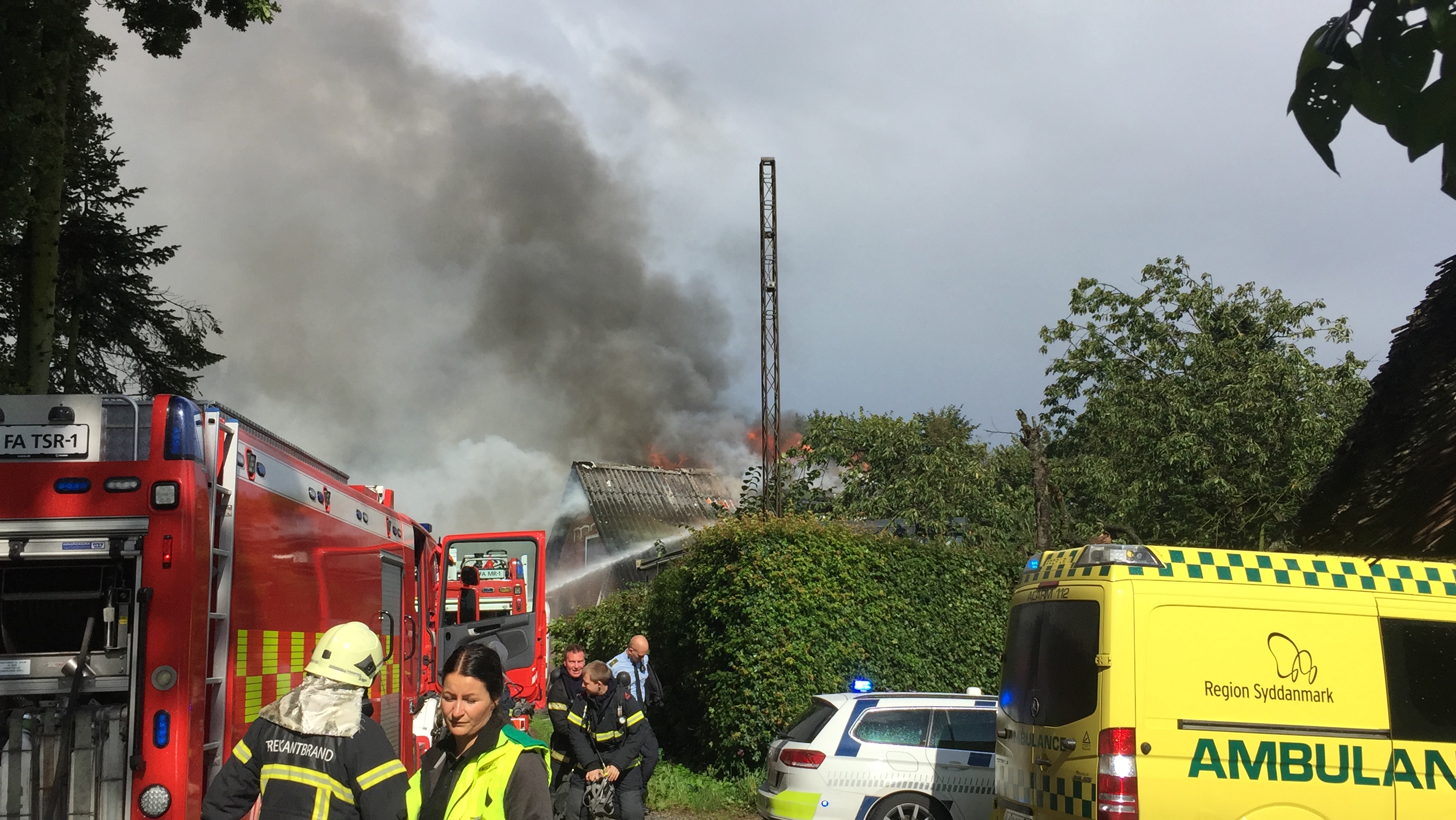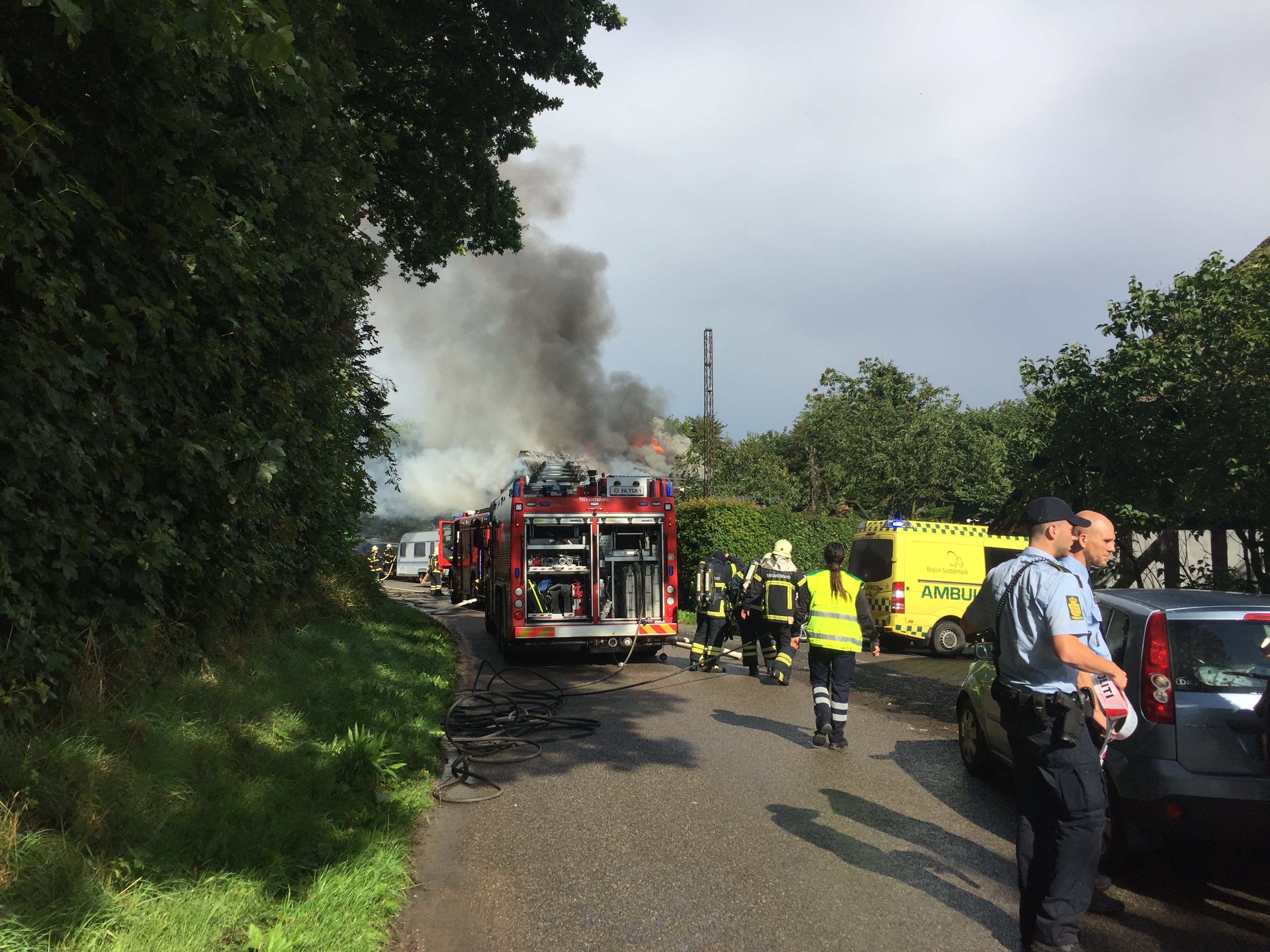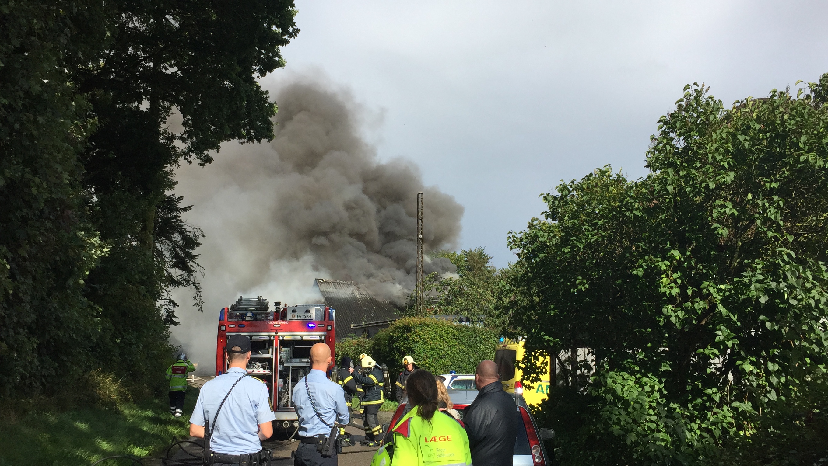Politiet og beredskabet forsøger lige nu at få et overblik over situationen og folk bliver bedt om at holde sig på afstand og give beredskabet arbejdsro. Der bliver brug for assistance med vandtankvogne.