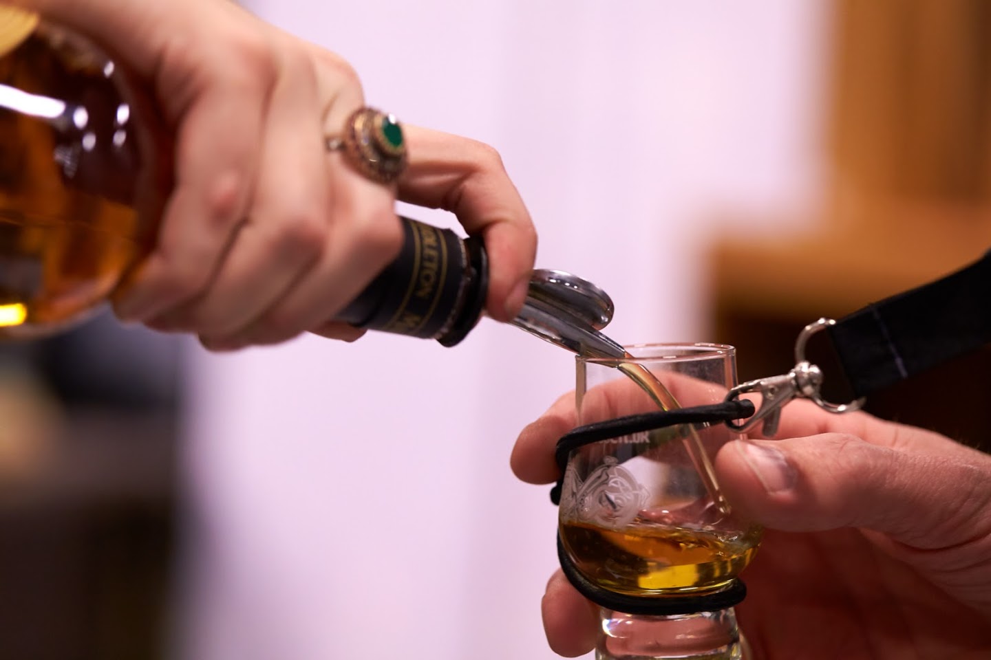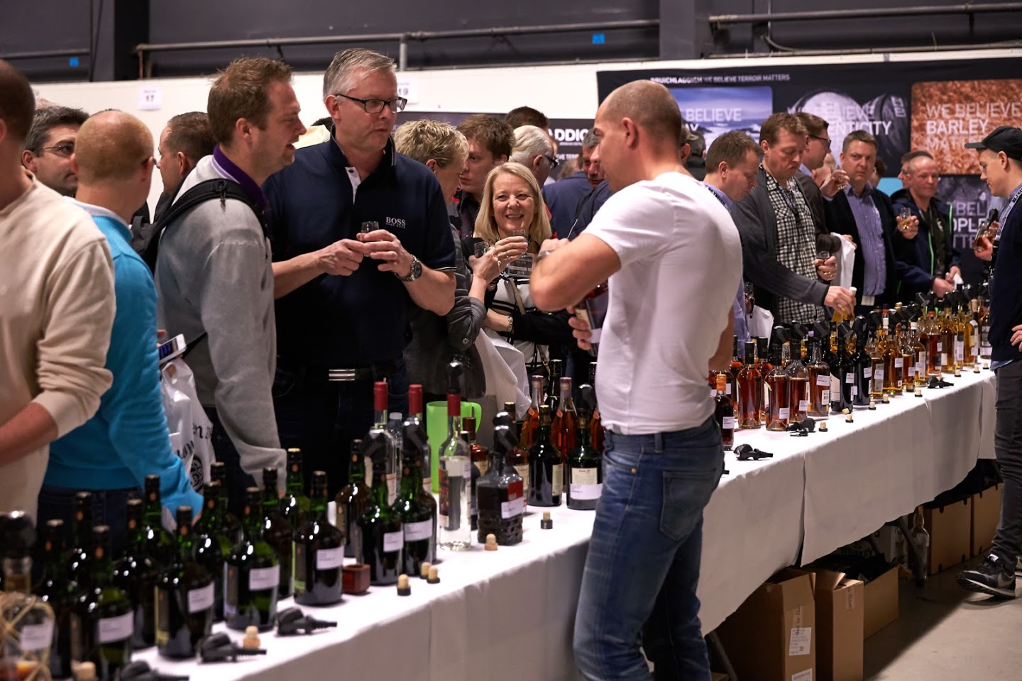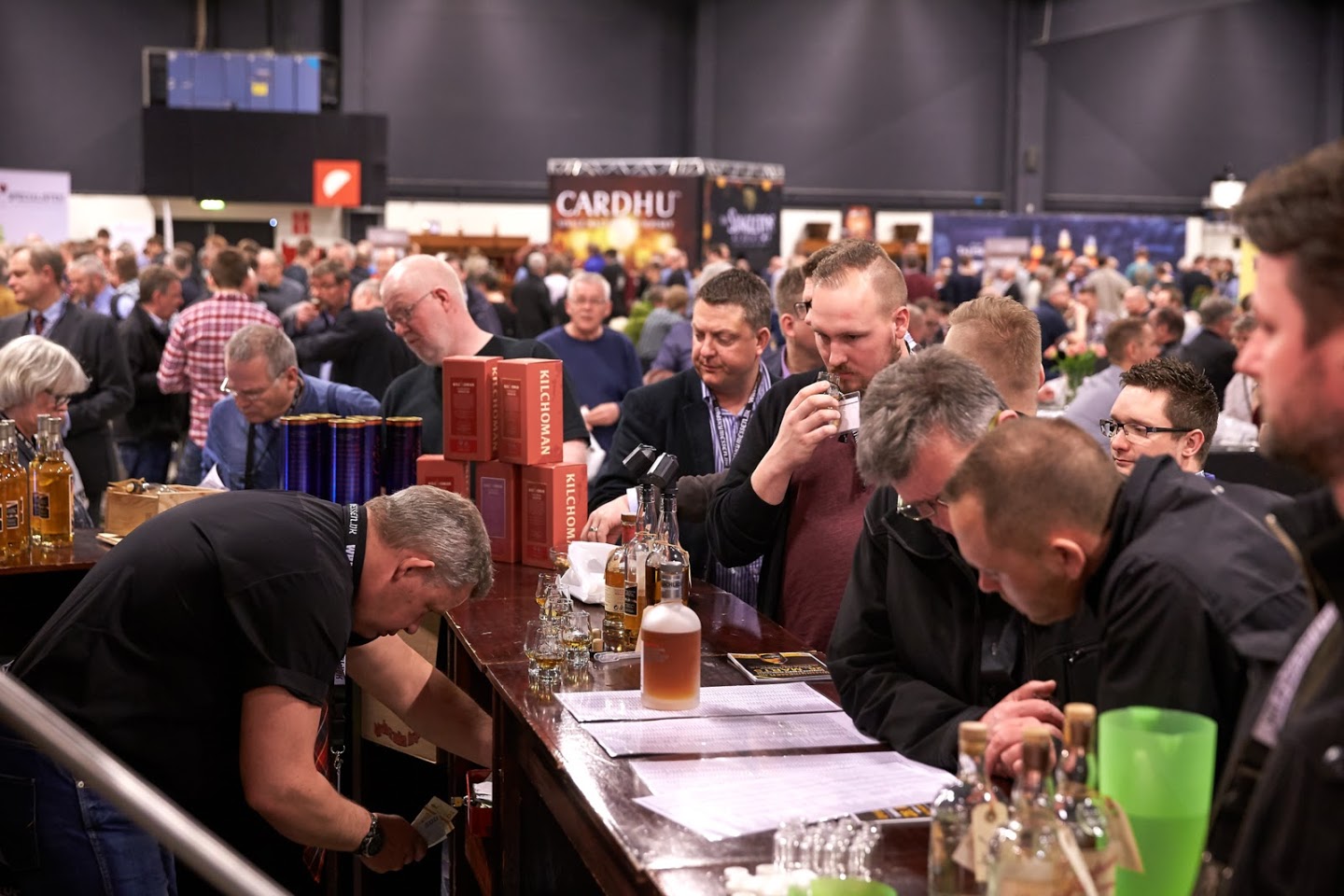 Indenfor i MesseC kunne gæsterne nyde smagsprøver af mange hundrede Whiskys og der var gode muligheder for en snak med andre Whisky-elskere der deler samme passion. Ved indgangen havde alle gæsterne fået udleveret et glas, de kunne række frem ved alle standene. Og i glassene kom den skønneste Whisky fra alle tænkelige producenter – og overtallet af gæsterne havde saglige smil om munden.